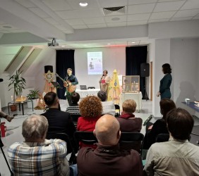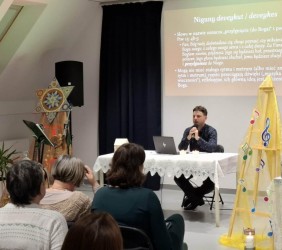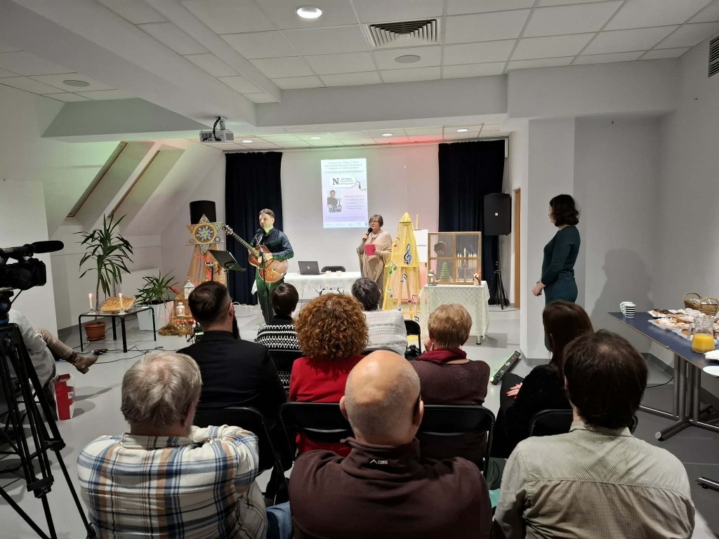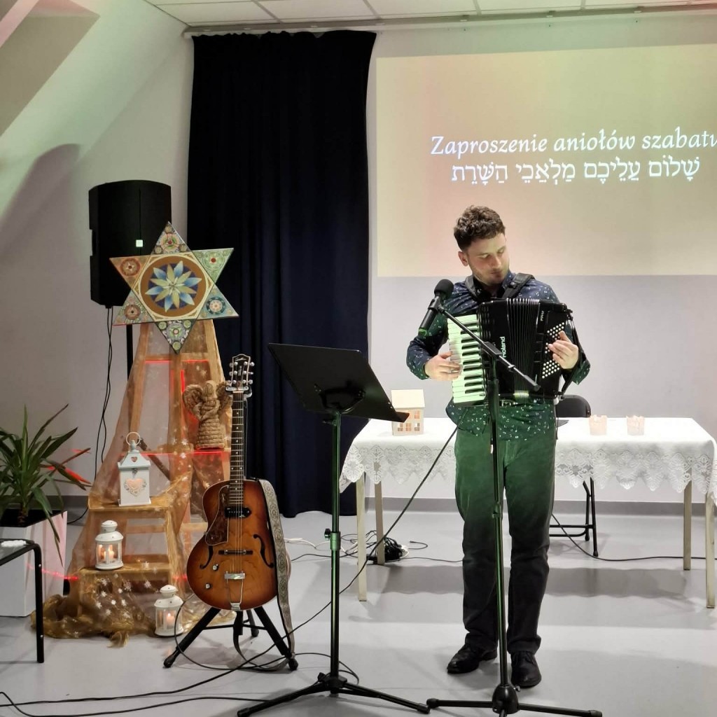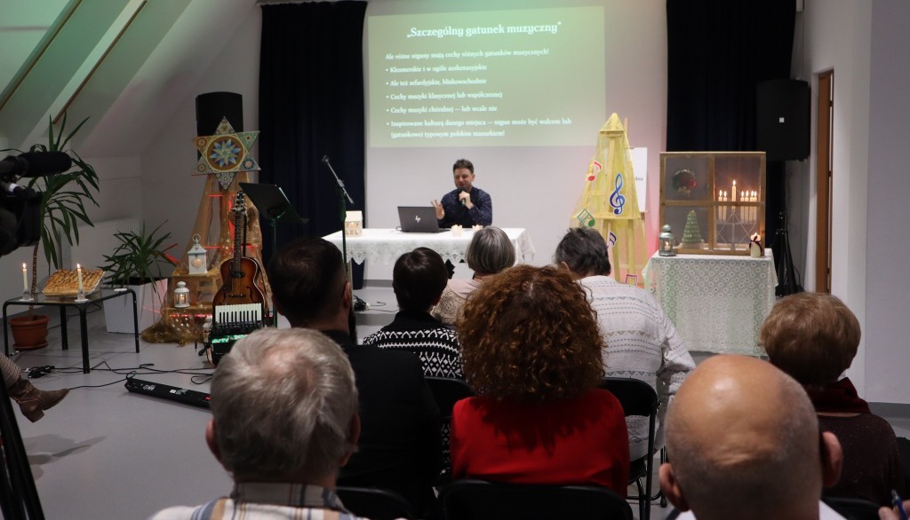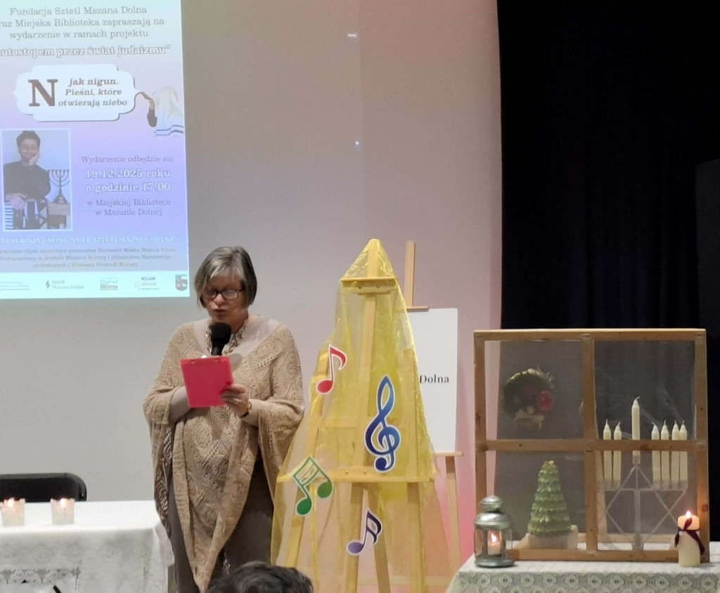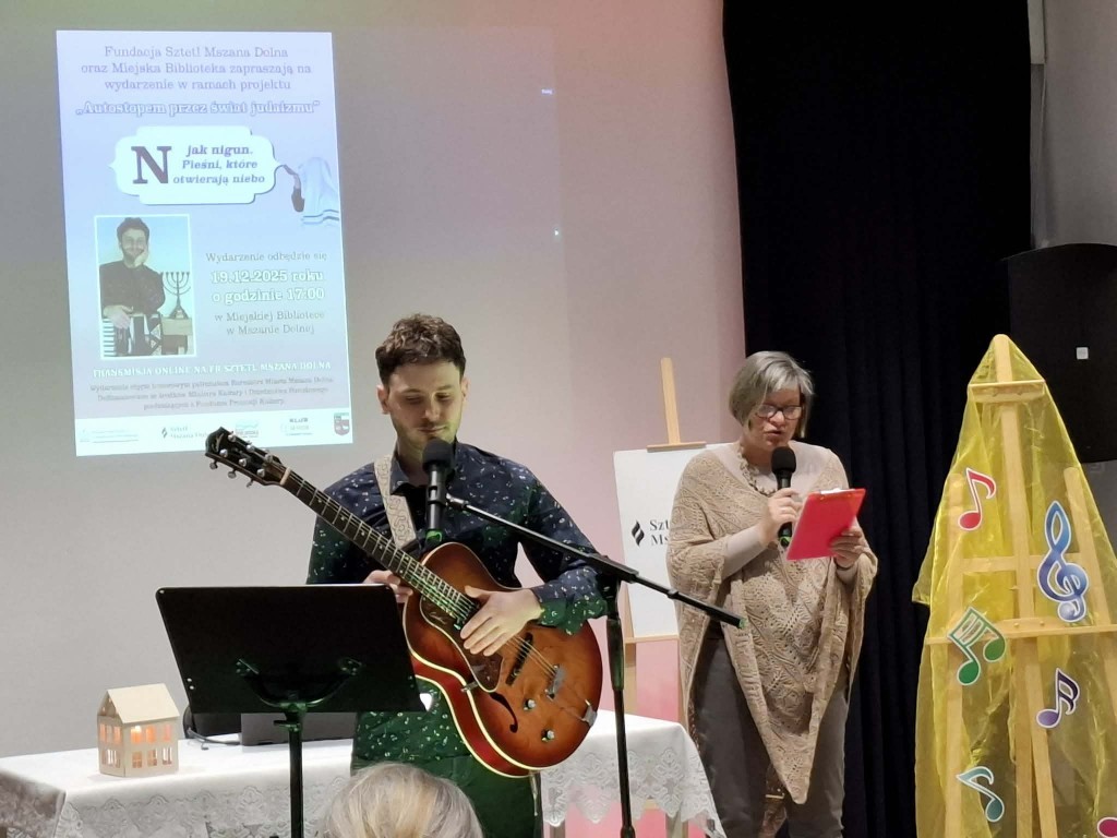 On 19th December 2025, the Municipal Library in Mszana Dolna hosted the last meeting of our project ‘Hitchhiker's Guide to Judaism’. It was devoted to nigunim – Jewish prayer songs that are difficult to define unambiguously. The topic was presented – both from a theoretical and practical perspective: through singing, accompanied by accordion and guitar, by Jakub Antosz-Rekucki, a linguist and researcher of melic poetry.
