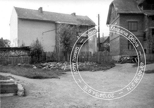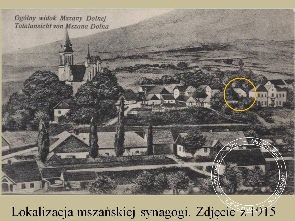 The location of the synagogue in Mszana Dolna skyline. Source: The National Digital Archives of Poland.