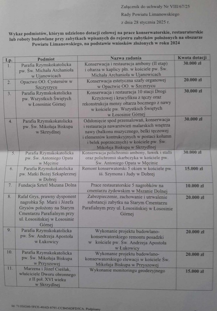 Dotacja od Powiatu Limanowskiego na renowację macew na naszym cmentarzu żydowskim