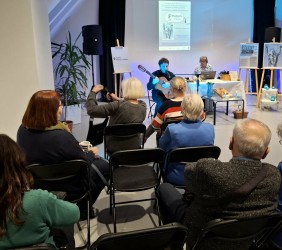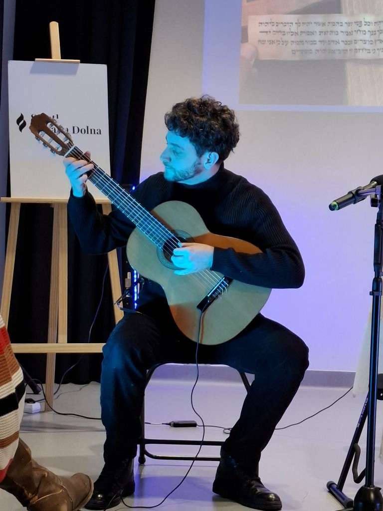 Spotkanie poświęcone modlitwie w judaizmie, muzycznie opracował Jakub, grając przejmującą modlitewną pieśń Leonarda Cohena, we własnym tłumaczeniu oraz hymn szabatowy „Szalom alejchem”, a na prośbę zebranych, także „Leman achaj wereaj”. Wkrótce zagra dla nas więcej, bo kolejne spotkanie, za 2 tygodnie, poświęcone jest nigunom, pieśniom żydowskim, które – wedle chasydzkiej legendy – otwierają bramy nieba.