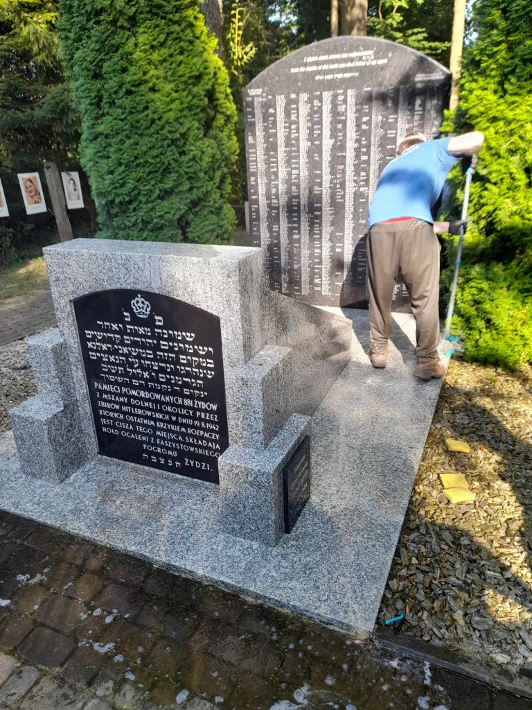 Po wysprzątaniu terenu oraz umyciu macewy postawionej na cmentarzu dla spoczywających tam kilkudziesięciu Ofiar Zagłady, grupa przygotowała jeszcze miejsce pamięci na Pańskim na zbliżające się obchody 82. Rocznicy Zagłady, które Fundacja Sztetl Mszana Dolna, organizuje w najbliższą niedzielę. Umyto pomnik i tablicę z imionami zamordowanych, wycięto zwisające gałęzie, wygrabiono trawę, gałęzie i śmieci. Pracownicy Zakładu Gospodarki Komunalnej, którzy przybyli na miejsce, odebrali kolejne kilka worków śmieci.
