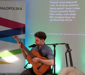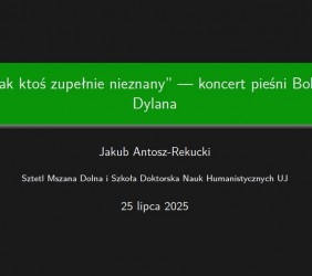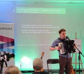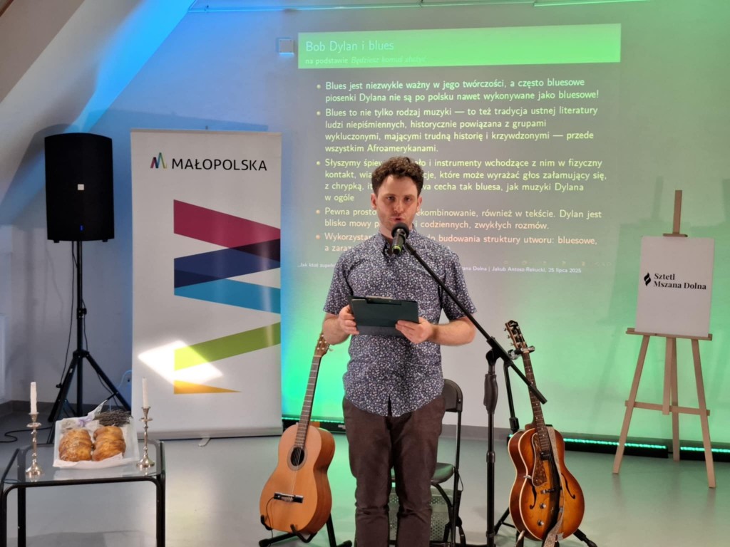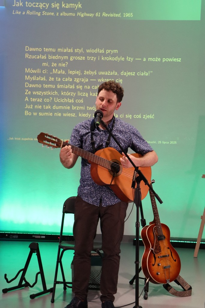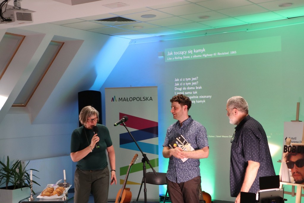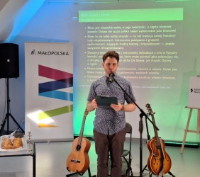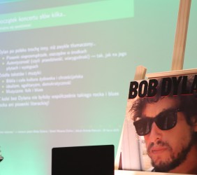 Twórczość legendarnego barda, jedynego pieśniarza uhonorowanego literacką nagrodą Nobla, przedstawił zgromadzonym, jej badacz i tłumacz, Jakub Antosz-Rekucki, doktorant Szkoły Doktorskiej Nauk Humanistycznych Uniwersytetu Jagiellońskiego w Krakowie.