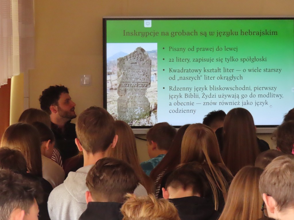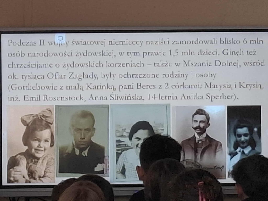 Uczestnicy poznali niezwykłe losy Sprawiedliwych i ocalonego przez nich Moszego Jereda, ale przy okazji dowiedzieli się także sporo o życiu i śmierci mszańskiej społeczności żydowskiej. Miało to znaczenie tym istotniejsze, że tuż przy szkole stoi tablica upamiętniająca mszańską synagogę - budynki stały niegdyś w bliskiej odległości.