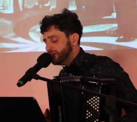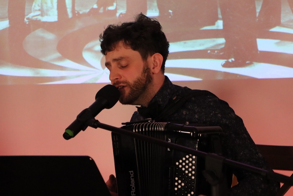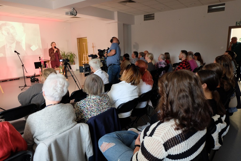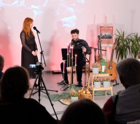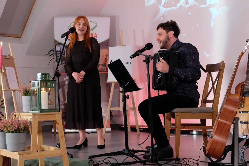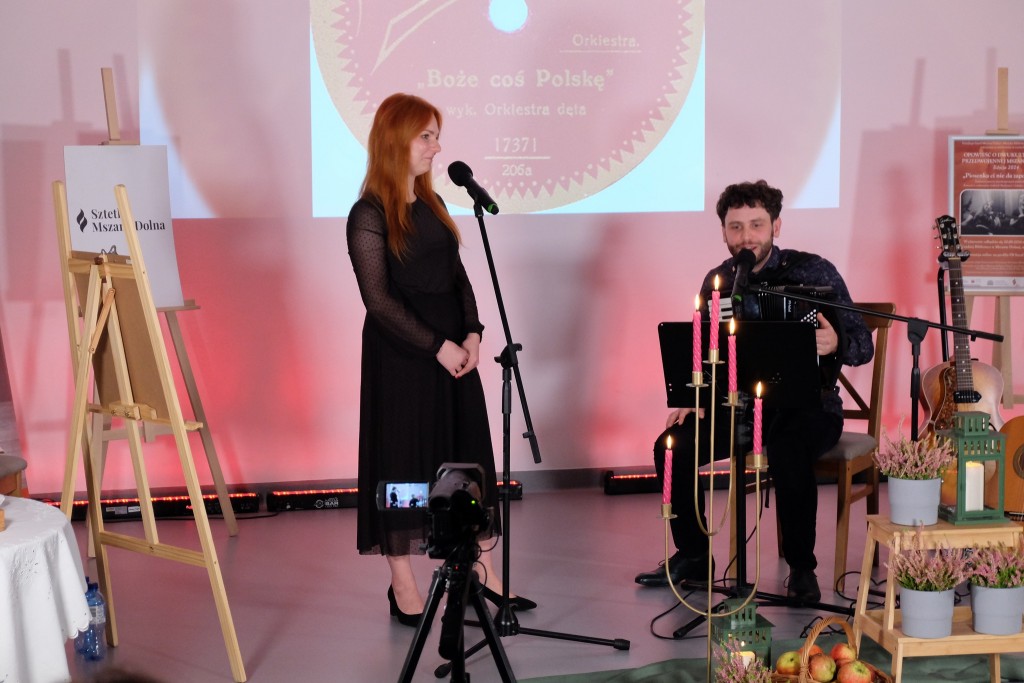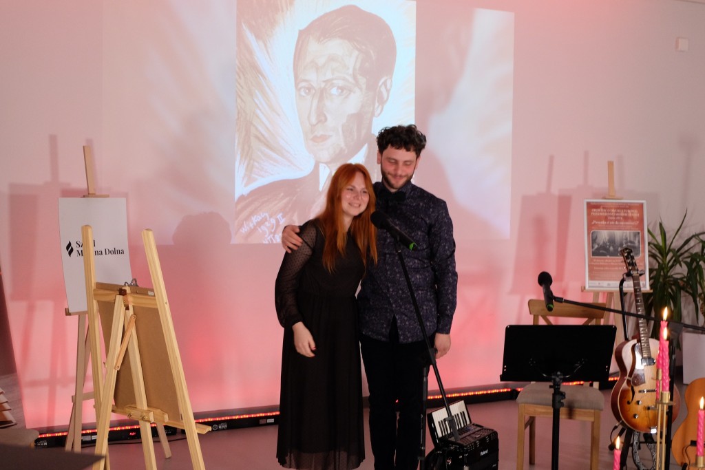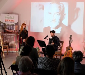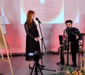Gabriela Bochniarz, młoda, utalentowana muzycznie psycholożka i Jakub Antosz-Rekucki, literaturoznawca, tłumacz poezji mellicznej, zabrali nas w świat przedwojennych przebojów, ale też początków polskiego kina, kabaretów, literackich kawiarni. Bo koncert wzbogacony został o ciekawe konteksty powstawania prezentowanych utworów, życiorysy - niejednokrotnie tragiczne - twórców, osadzone na tle przedwojennej, okupacyjnej i powojennej historii Polski. Żydowscy twórcy wielkich przebojów byli bowiem polskimi obywatelami, którzy z jednej strony walczyli dla ojczyzny: zarówno w wojnie z bolszewikami w 1920 r., podczas kampanii wrześniowej, obydwu powstań warszawskich czy w armii gen. Andersa, z drugiej dzielili los żydowskich współobywateli, zmuszanych do ukrywania się, prześladowanych, ginących w gettach i obozach Zagłady. Jakub, w wykładzie przeplatanym kolejnymi piosenkami, przedstawił też wkład żydowskich twórców w powstanie i rozwój kinematografii, wytwórni płytowych, struktur autorskich, teatru i kabaretu.