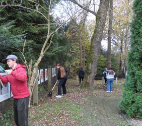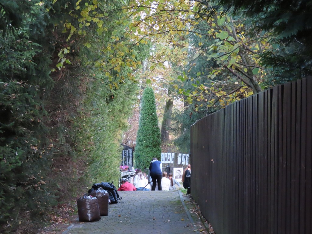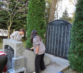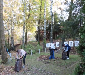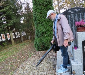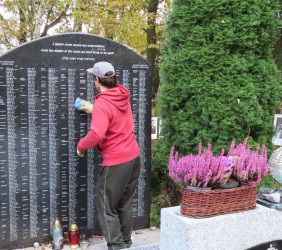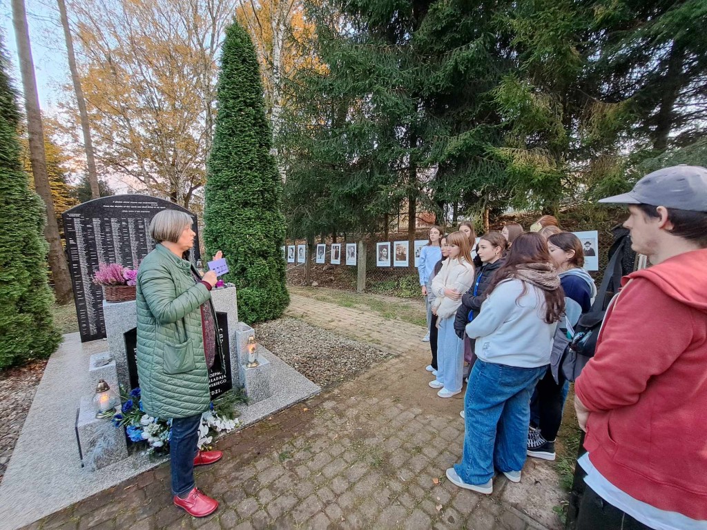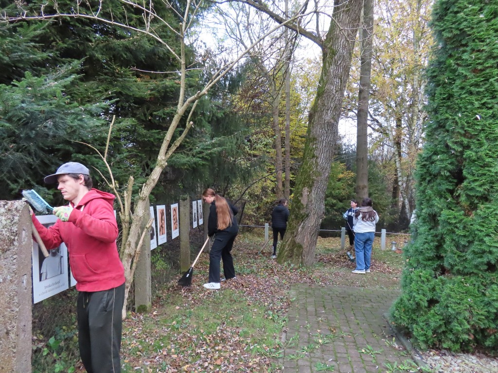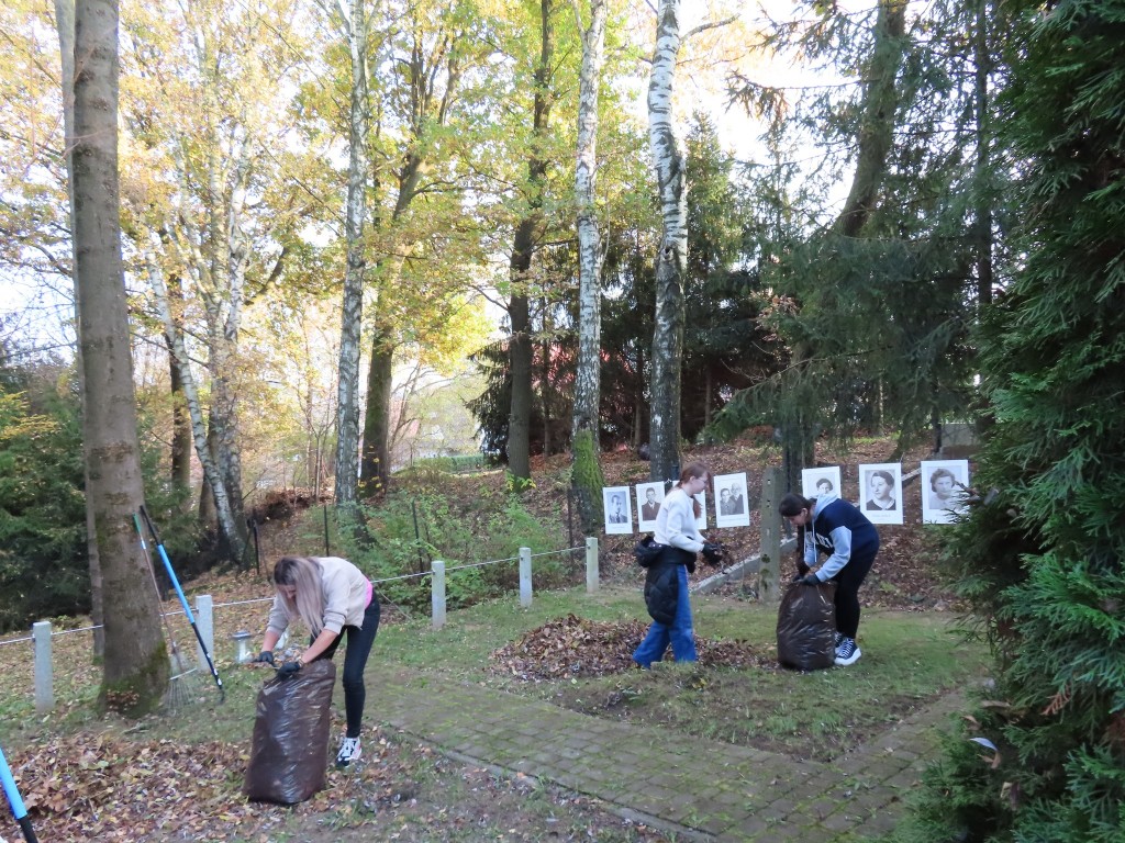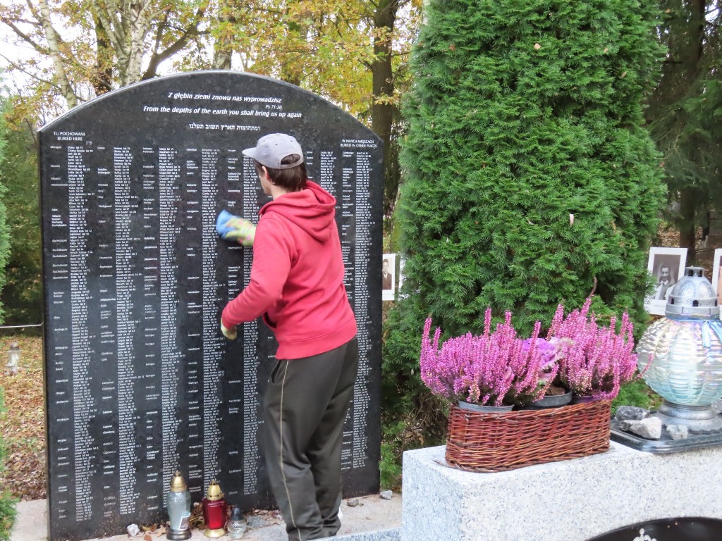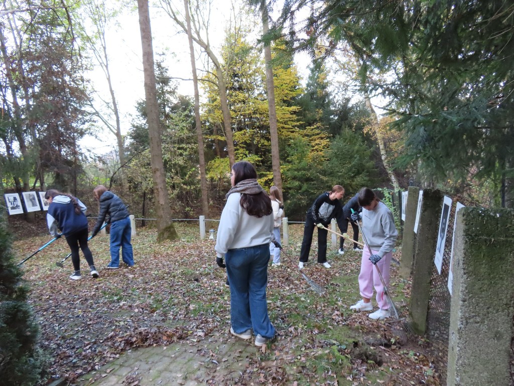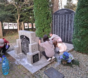 Wolontariusze umyli pomnik i tablicę upamiętniającą ponad tysiąc pomordowanych, otoczenie mogiły, zgrabili liście, uporządkowali alejki. Na koniec dziewczęta zapaliły przyniesione znicze, położyły kamyki na pomniku i przed rzeczywistym miejscem pochówku.