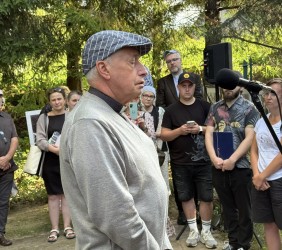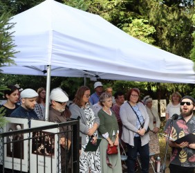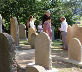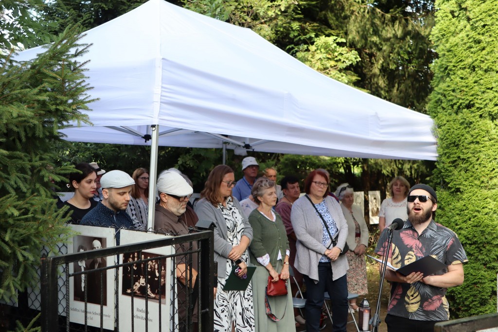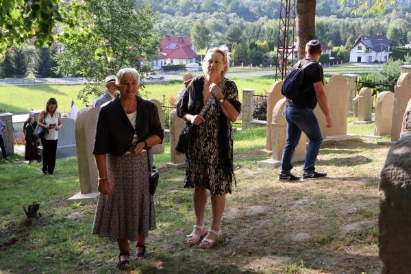 Kolejnym punktem było oddanie do użytku po gruntownym remoncie, cmentarza żydowskiego przy ul. Zakopiańskiej. Fundacja Sztetl Mszana Dolna, która wraz z Miastem pozyskała dofinansowanie z rządowego programu odnowy zabytków, wzięła na swoje barki wyremontowanie niszczejącego ogrodzenia oraz renowację kolejnych zabytkowych 20 macew. Formalny odbiór prac odbędzie się 20.08.2025 r. jednak zostały one już ukończone – symbolicznego otwarcia bramy dokonali: reprezentująca Urząd Miasta Pani Sekretarz Ewa Poray-Zbrożek i wiceprezes Fundacji, Marek Rekucki, którego ogromną zasługą była realizacja tak rozległego i trudnego przedsięwzięcia. Nową, dwujęzyczną tablicę, zawierającą podstawowe informacje o cmentarzu, losach jego ratowania oraz zasadach zachowania, odsłonili młodzi członkowie Sztetla, Rachela i Jakub Antosz-Rekuccy.