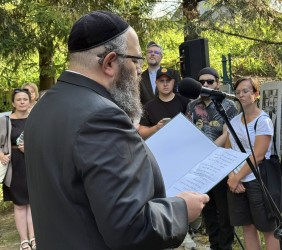 Uczestnicy położyli kamyki i zapalili znicze w miejscach spoczynku dawnych współmieszkańców i Ofiar Zagłady, w tym kilkorga dzieci.