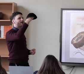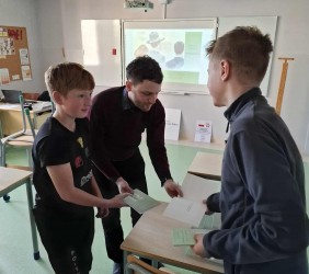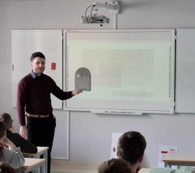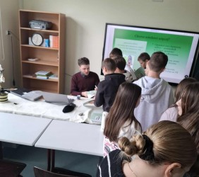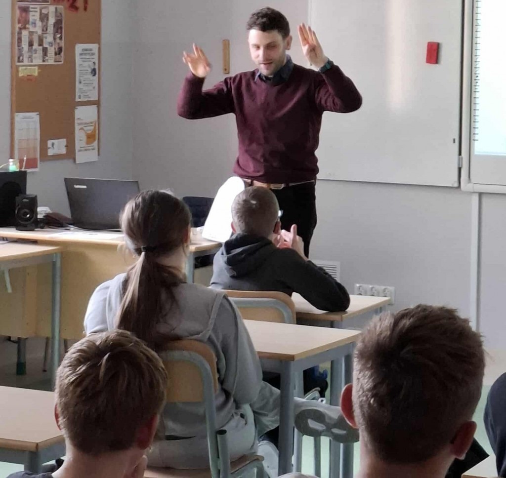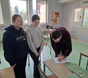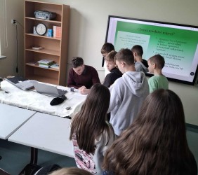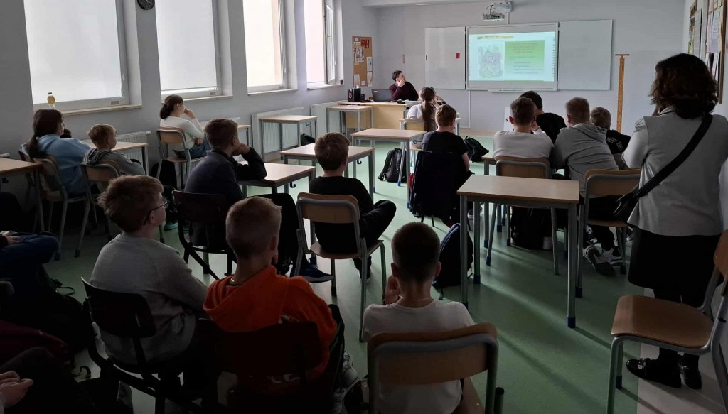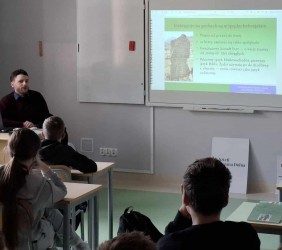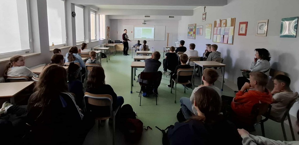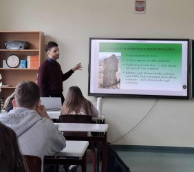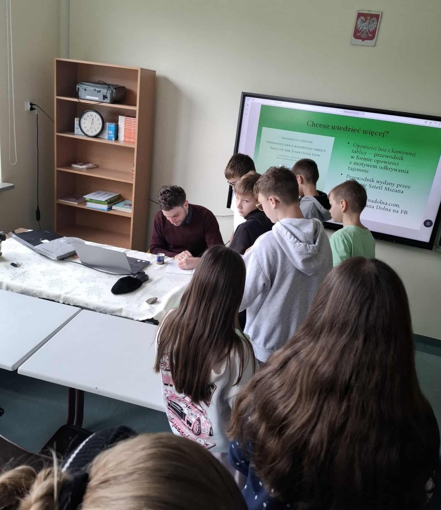 Jakub Antosz-Rekucki, opowiedział młodzieży nie tylko o samej publikacji, ale też o znaczeniu podtrzymywania pamięci i poznawaniu kultury dawnych mieszkańców naszego miasta i gminy.