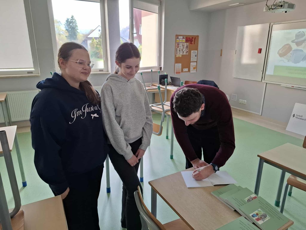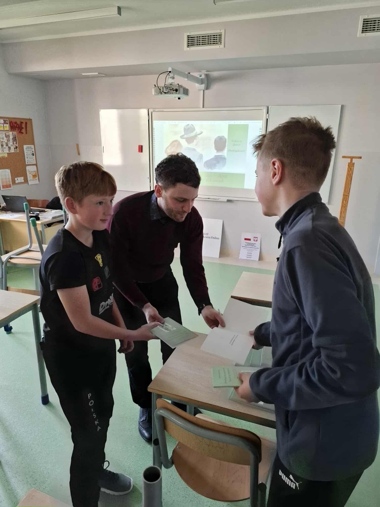 Uczniowie byli zaciekawieni, pojawiło się wiele dodatkowych pytań, a na koniec każdy otrzymał egzemplarz książki, z imienną dedykacja autora.