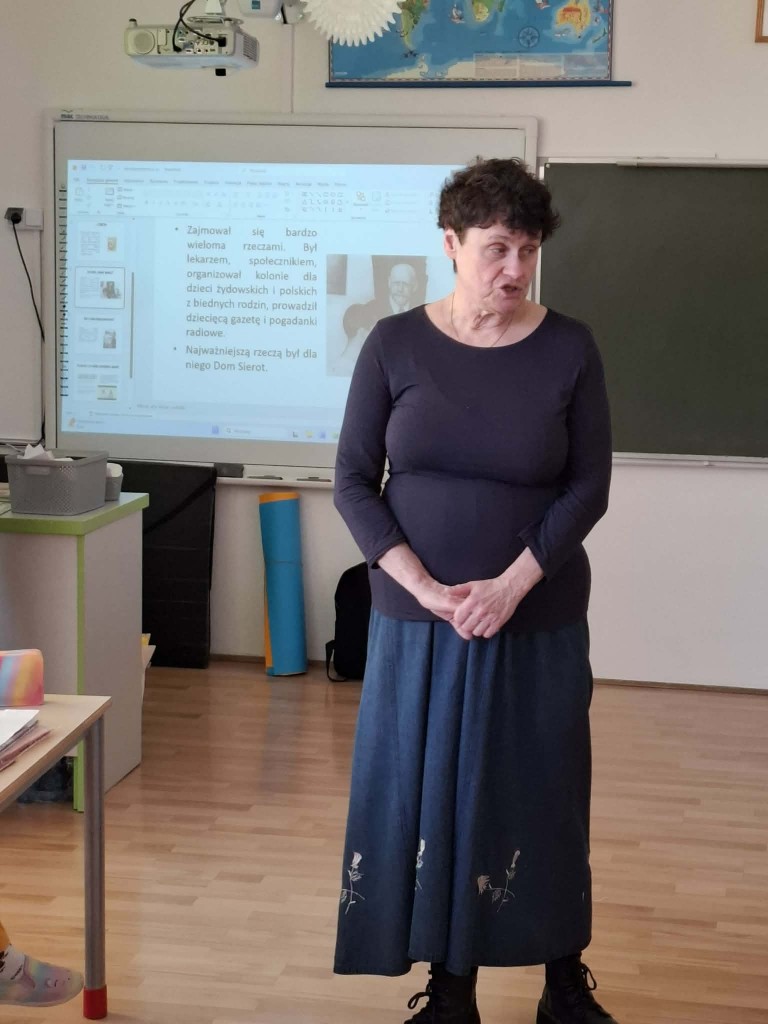 Edukacyjne działania w tym roku rozpoczęliśmy z bardzo szczególnym gościem: Pani Anna Cukierman-Podgórska z warszawskiej Gminy Żydowskiej oraz Stowarzyszenia Drugie Pokolenie, polonistka i nauczycielka przedmiotów projektowo-szkoleniowych Szkoły Podstawowej im. Cecylii Plater-Zyberkówny w Warszawie, przeprowadziła warsztaty korczakowskie z grupami uczniów Szkoły Podstawowej nr 1 w Kasinie Wielkiej oraz Zespołu Szkoły i Przedszkola w Mszanie Górnej.
