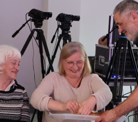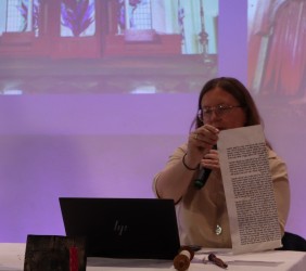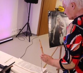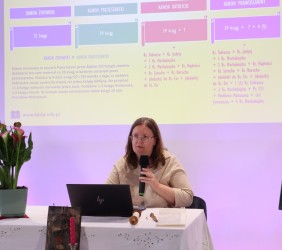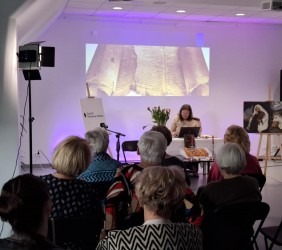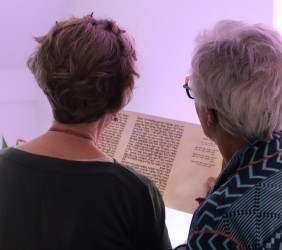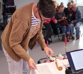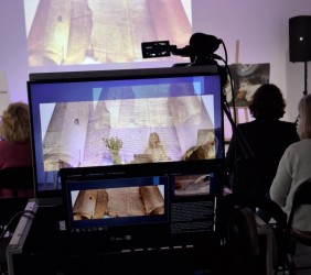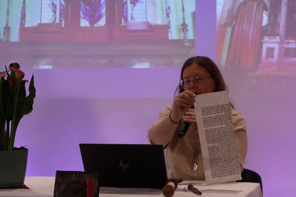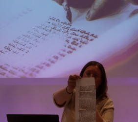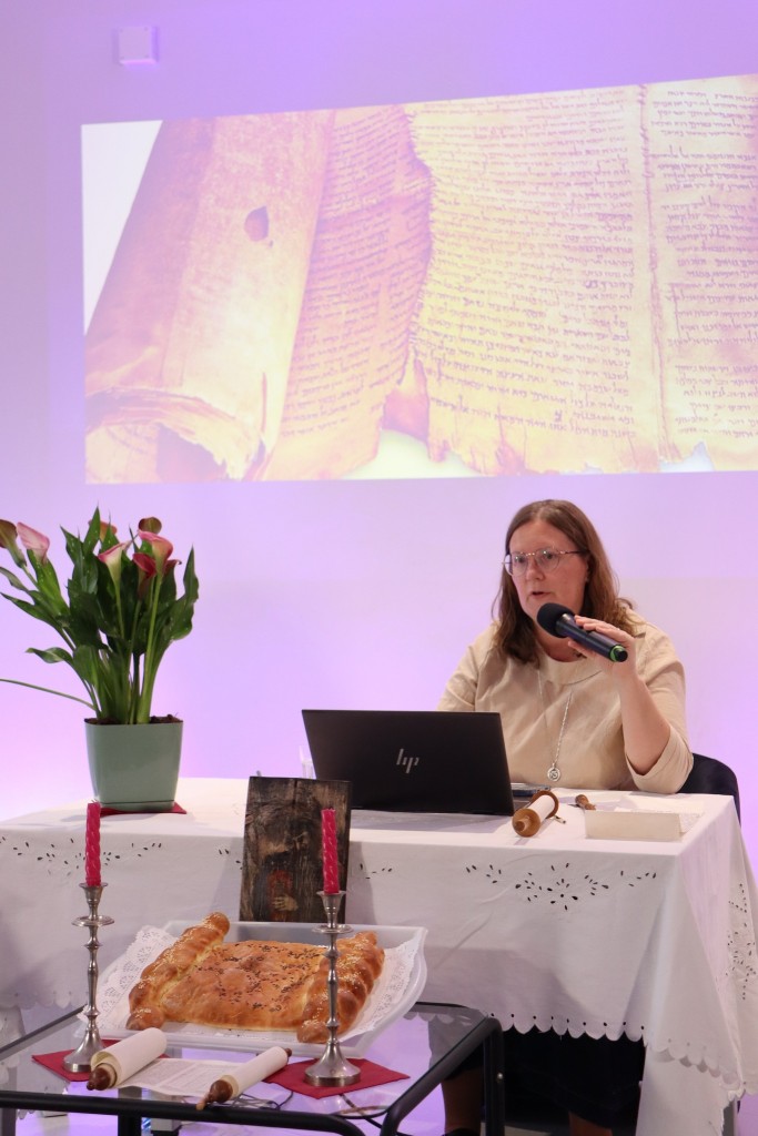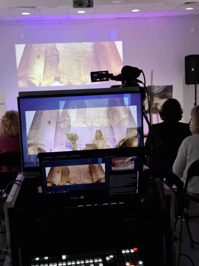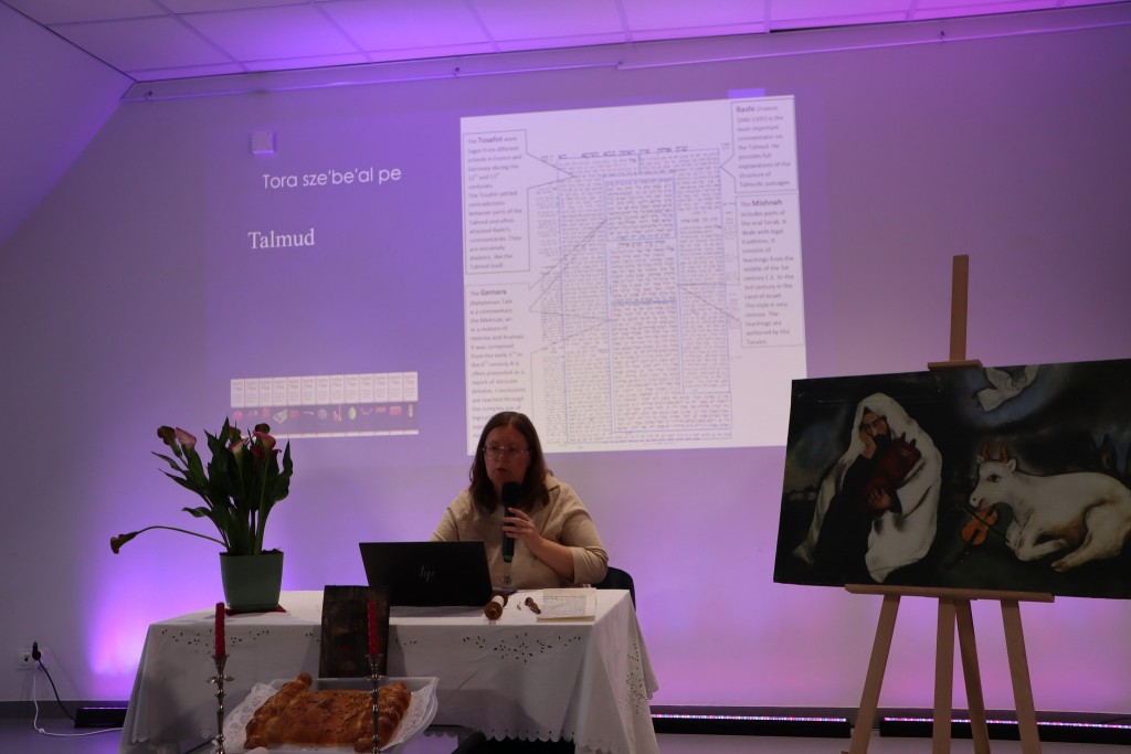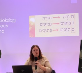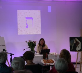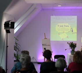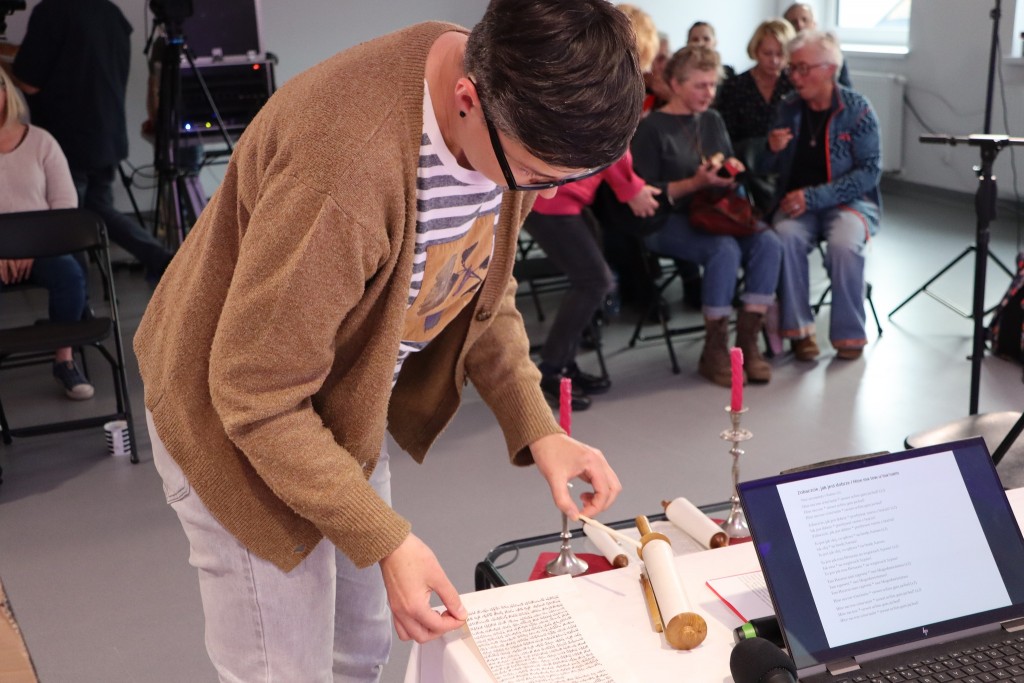Ci, którzy byli na miejscu, mogli wziąć do ręki fragment zwoju, jad do wodzenia po świętych literach, zwój Estery - jedyny, jaki ozdabia się ilustracjami. Ci biorący udział online, byli tym razem wyjątkowo aktywni, zadając na czacie liczne pytania, na które prelegentka odpowiadała na bieżąco.