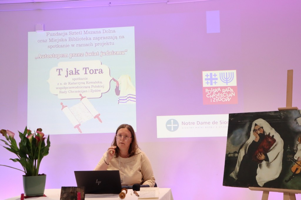 Przez wielowarstwowość i różne odcienie jej znaczeń, prowadziła zebranych teolożka, biblistka i judaistka, s. dr Katarzyna Kowalska ze zgromadzenia Sióstr Matki Bożej z Syjonu, która - będąc zaangażowaną katoliczką, swój doktorat obroniła na rabinackiej uczelni w Londynie. Doskonale rozumiejąca, że poznając żydowskie korzenie chrześcijaństwa, zgłębiamy i lepiej rozumiemy własną tożsamość. Zaangażowana w dialog ponad 20 lat, także jako współprzewodnicząca Polskiej i wiceprzewodnicząca Światowej Rady Chrześcijan i Żydów.