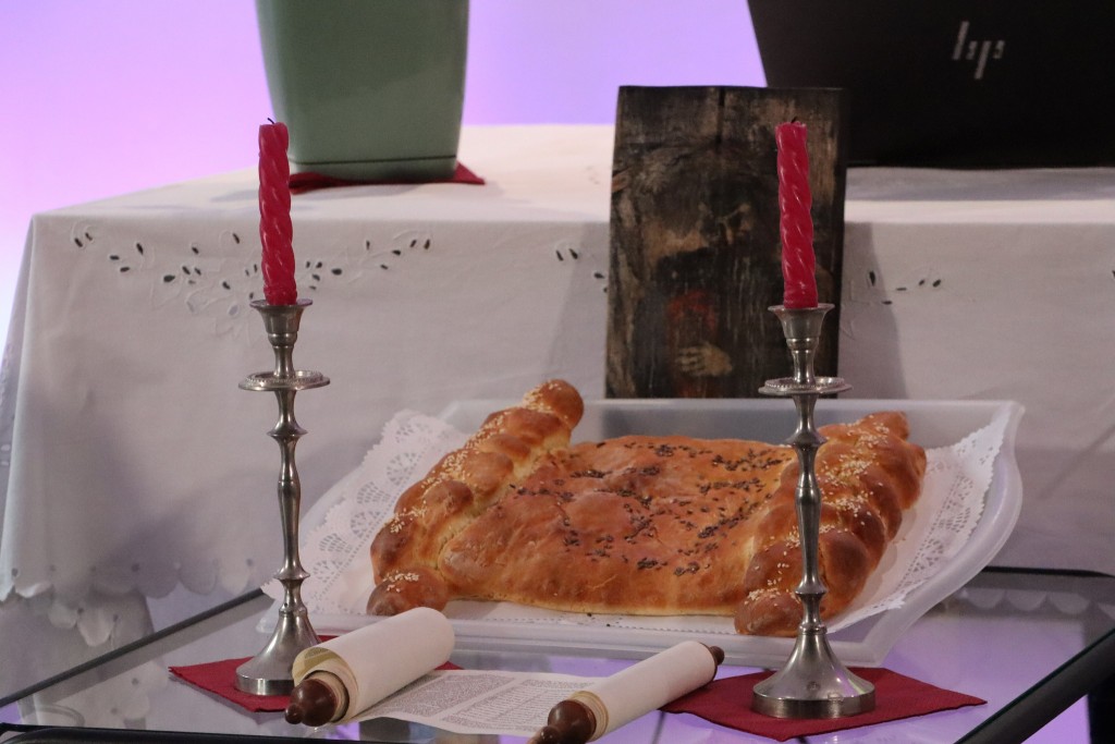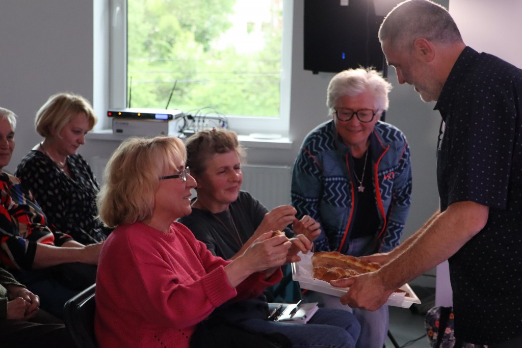 Tradycyjna, piątkowa chałka, przygotowana na spotkanie, miała - jakżeby inaczej - kształt zwoju Tory. Dzieląc się nią, prowadzono jeszcze rozmowy, pojawiały się kolejne pytania i refleksje.