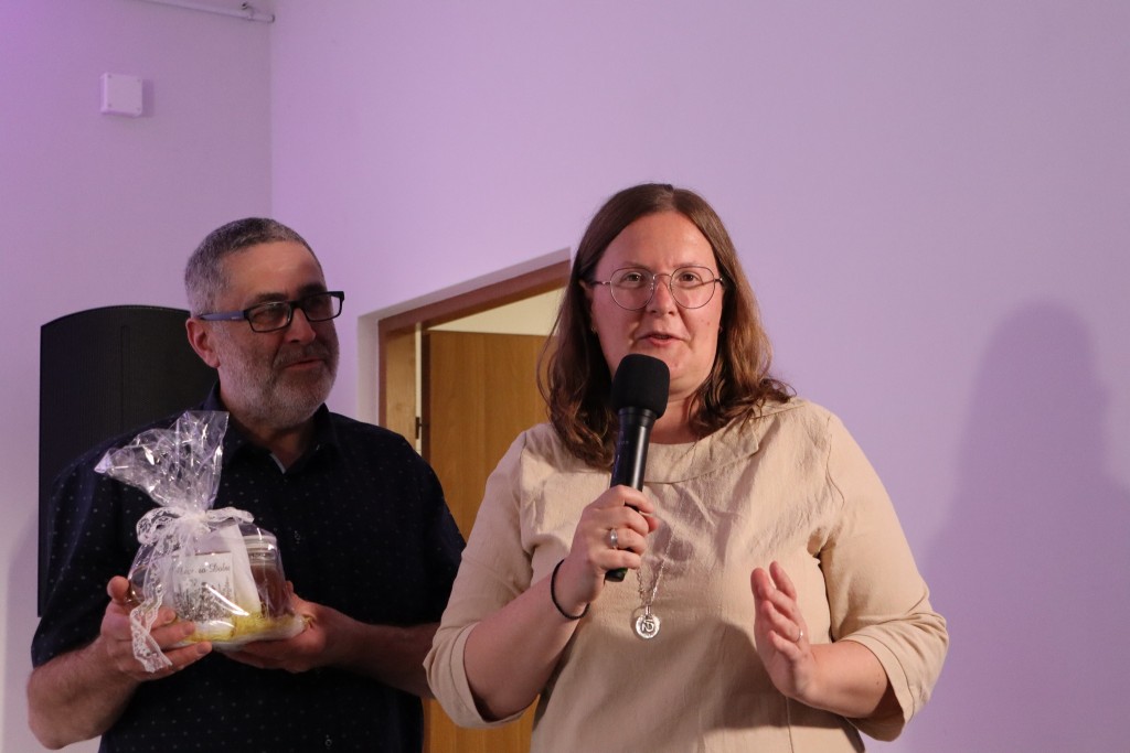 A że Tora - co także ogłasza Psalm - jest słodka jak miód, Prelegentka w podziękowaniu otrzymała słoik tego specyfiku wraz z pamiątkowym kubkiem z motywem Mszany Dolnej.