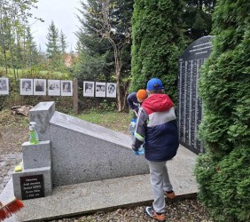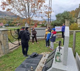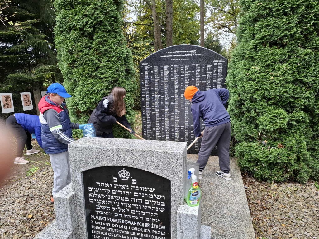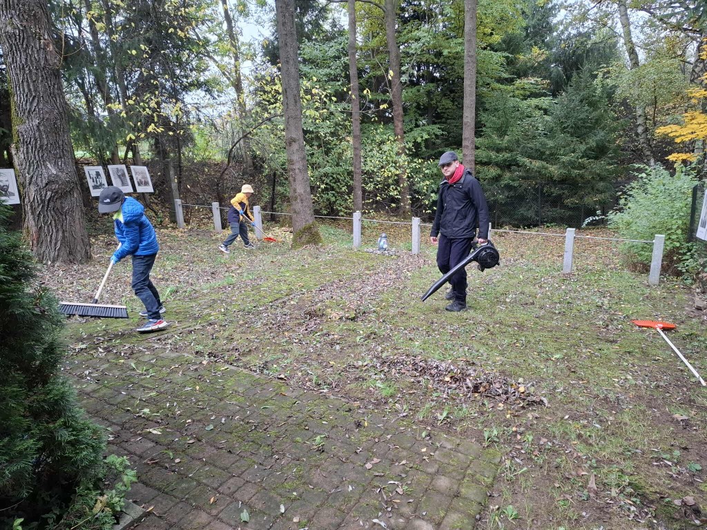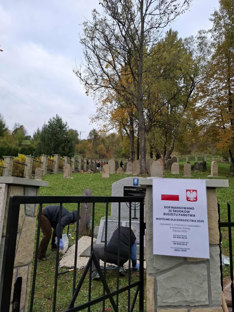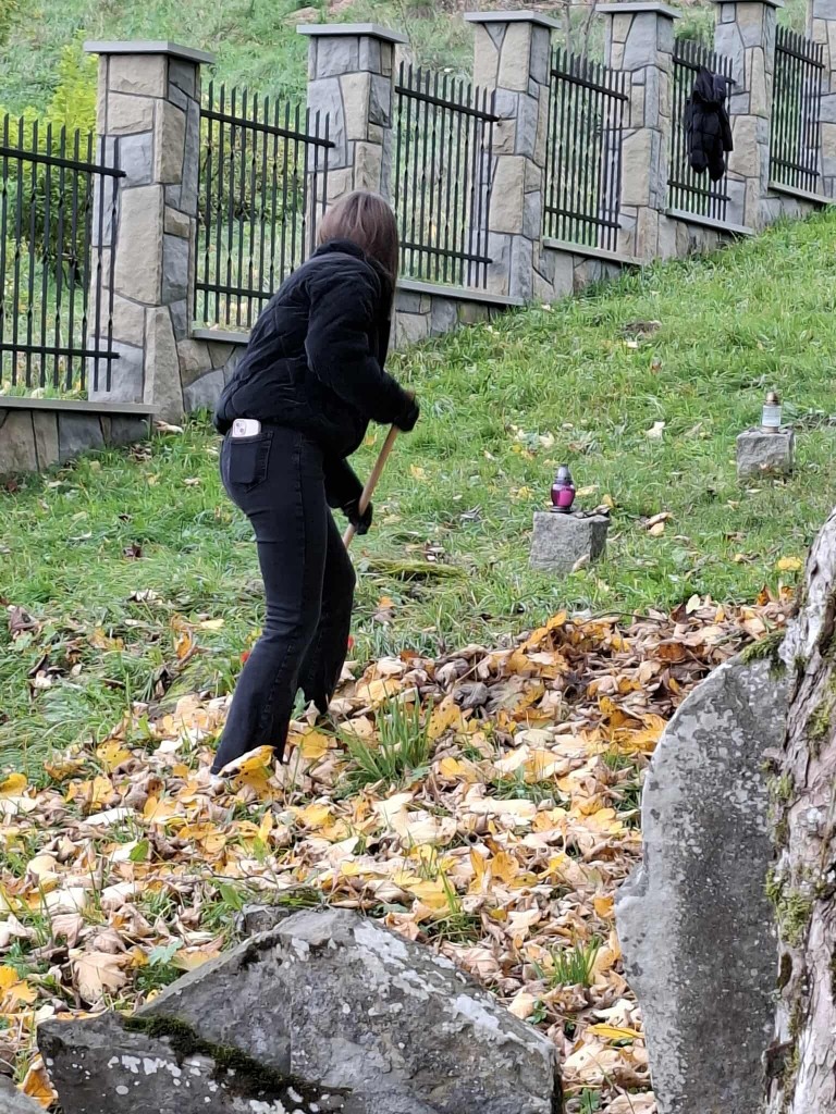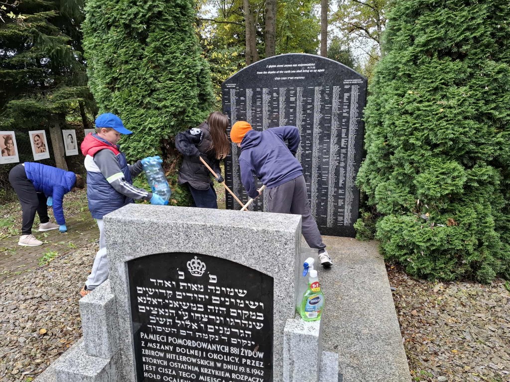 W piątkowe popołudnie, 17.10.2025 r. grupa wolontariuszy uporządkowała teren cmentarza żydowskiego przy ul. Zakopiańskiej oraz masowej mogiły Żydów na tzw. Pańskim. Tym razem do pracy włączyły się kolejne grupy młodych wolontariuszy ze szkół podstawowych z terenu gminy Mszana Dolna: Szkoły nr 2 w Mszanie Górnej i nr 1 w Kasinie Wielkiej, z opiekunkami. Nie zawiedli także starsi, stali uczestnicy naszej wspólnej troski o tę zabytkową nekropolię i ważne miejsce pamięci.