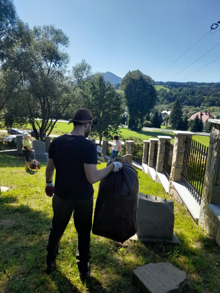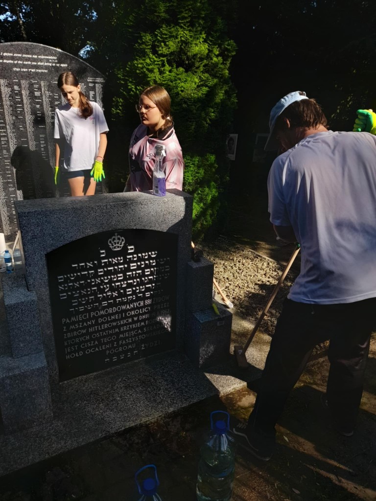 11.08.2025 r. grupa wolontariuszy uporządkowała dwa ważne miejsca pamięci w naszym mieście: cmentarz żydowski i masową mogiłę na Pańskim.