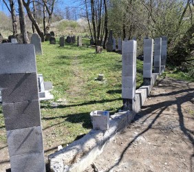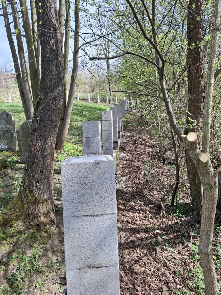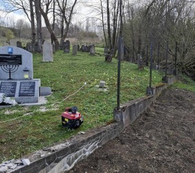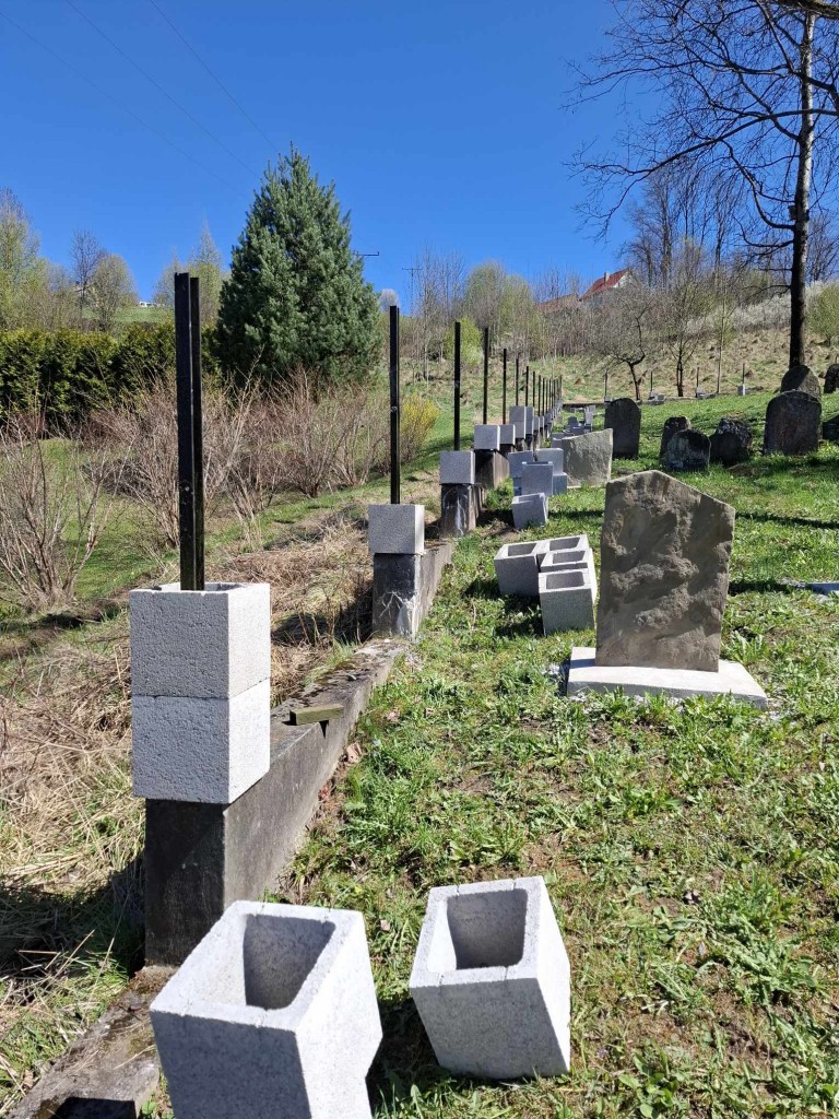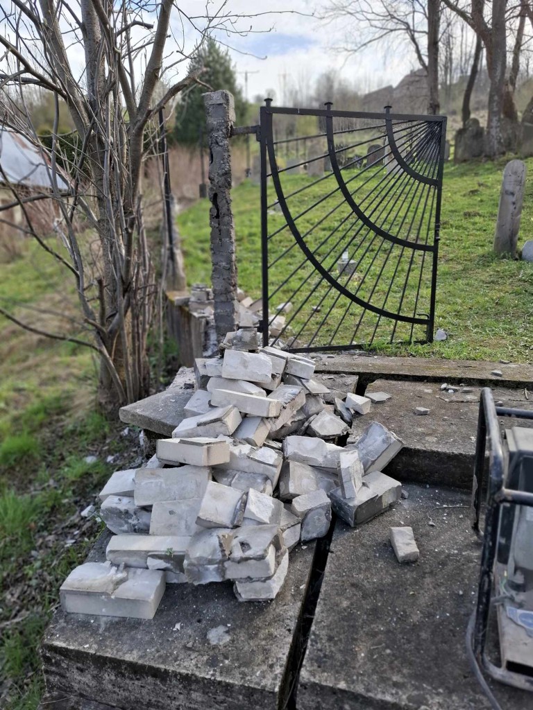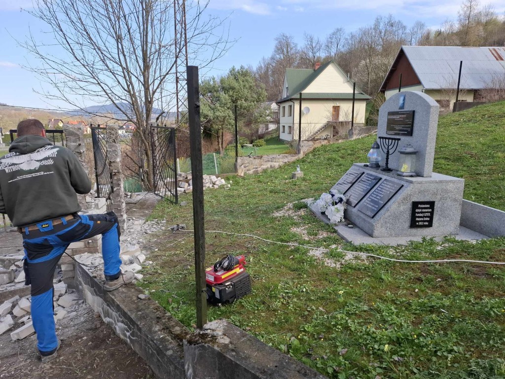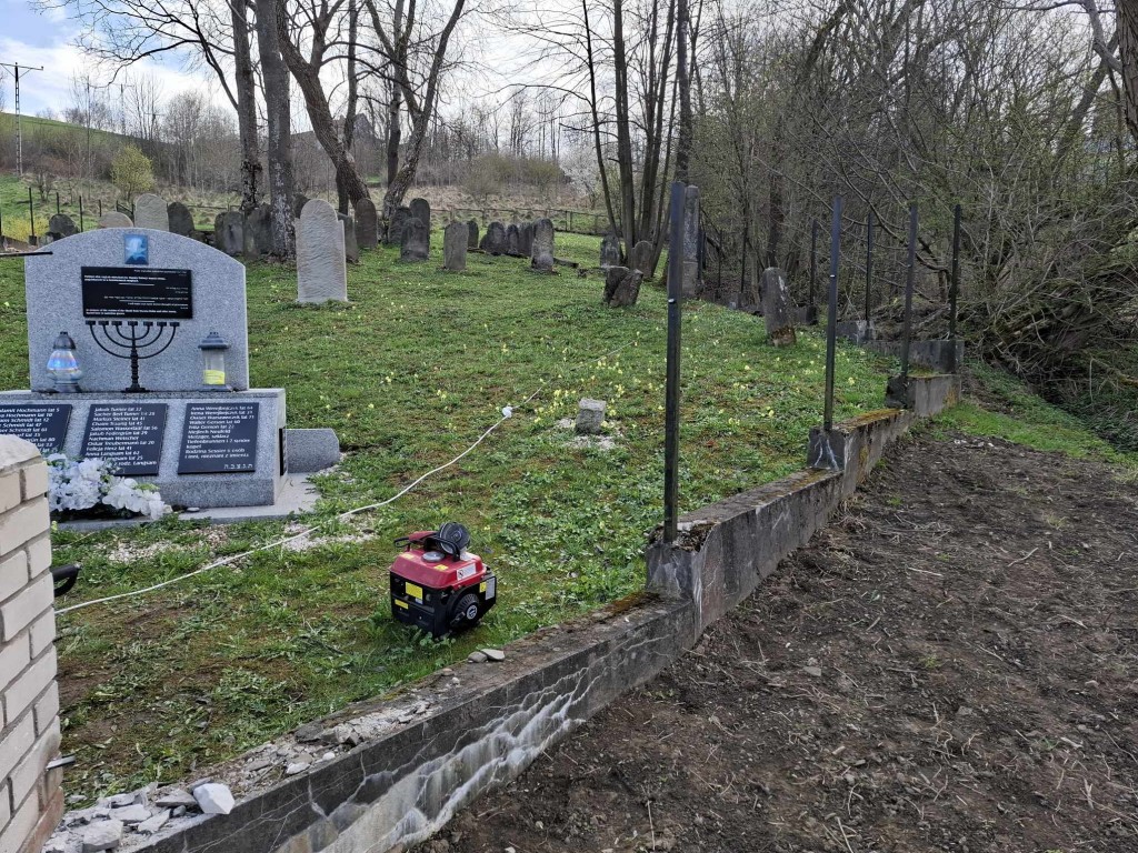 Kto śledzi nasze działania, wie, że ogrodzenie nekropolii, sfinansowane na początku lat 90-tych XX w przez ocaleńca z Zagłady, Lejba Gatterera, od kilku lat kruszyło się już i sypało; wypadło nawet jedno z metalowych przęseł. Przez wyłom dostawały się tam dzikie zwierzęta. Podjęcie prac było absolutnie konieczne. Po pokonaniu wielu przeszkód i poniesieniu dodatkowych kosztów związanych z zapewnieniem dojazdu do cmentarza, mogliśmy nareszcie je ropzpocząć!