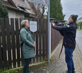 Plener rozmowy stanowił teren odremontowanego przez nas cmentarza żydowskiego oraz miejsce masowej mogiły Ofiar Zagłady na Pańskim. Dziennikarz zaplanował także ujęcia miasta i oklolicy.