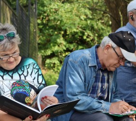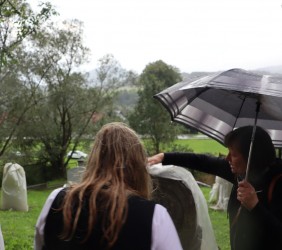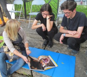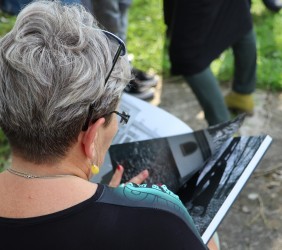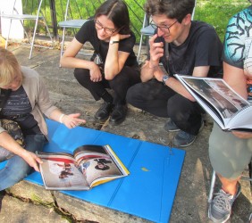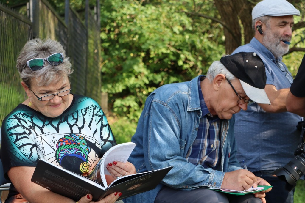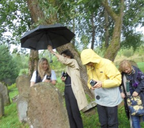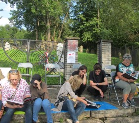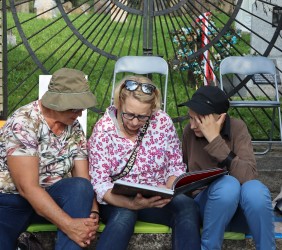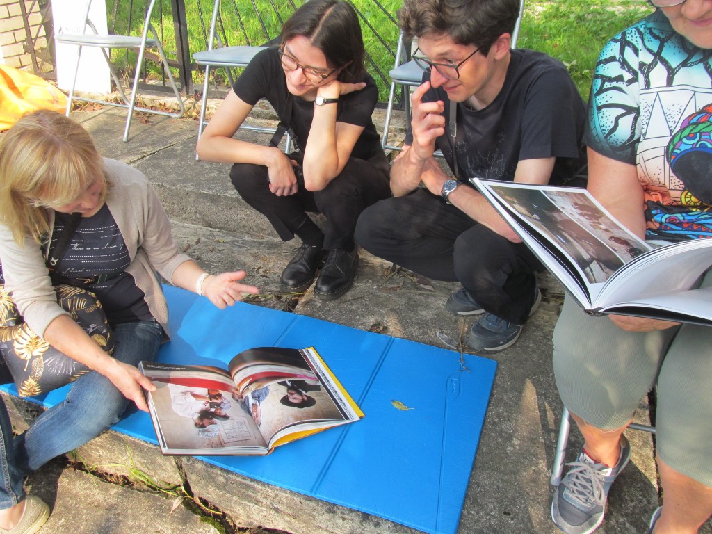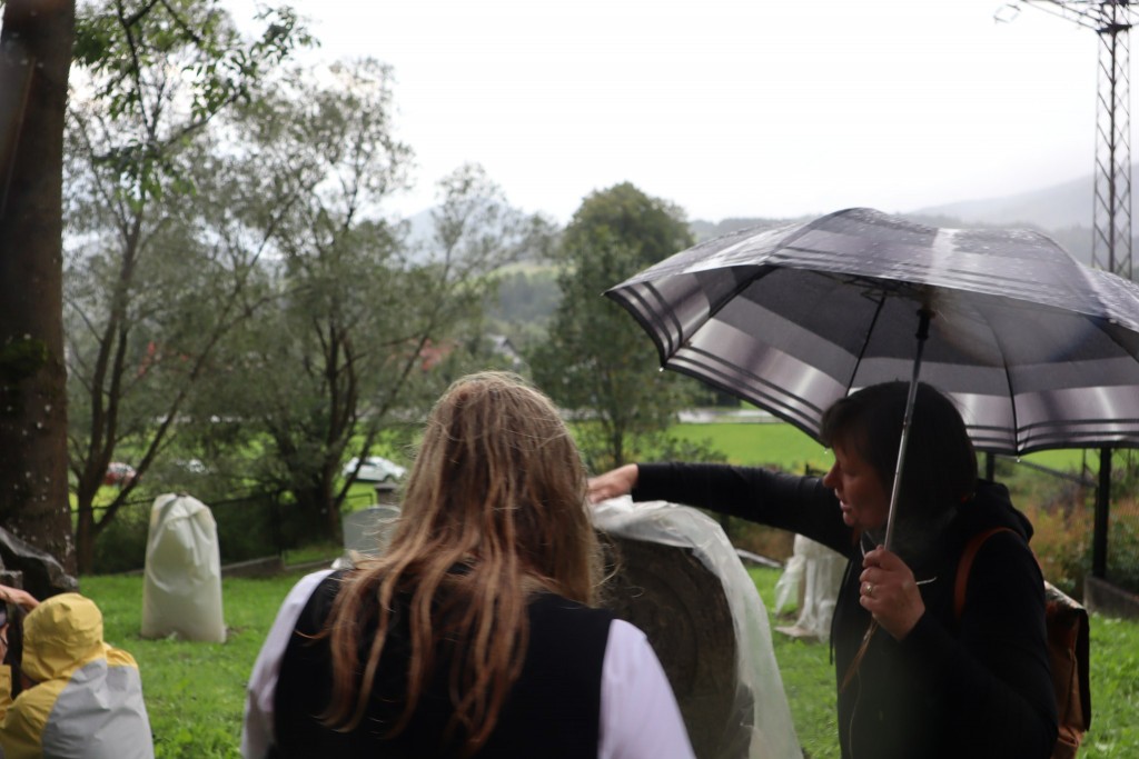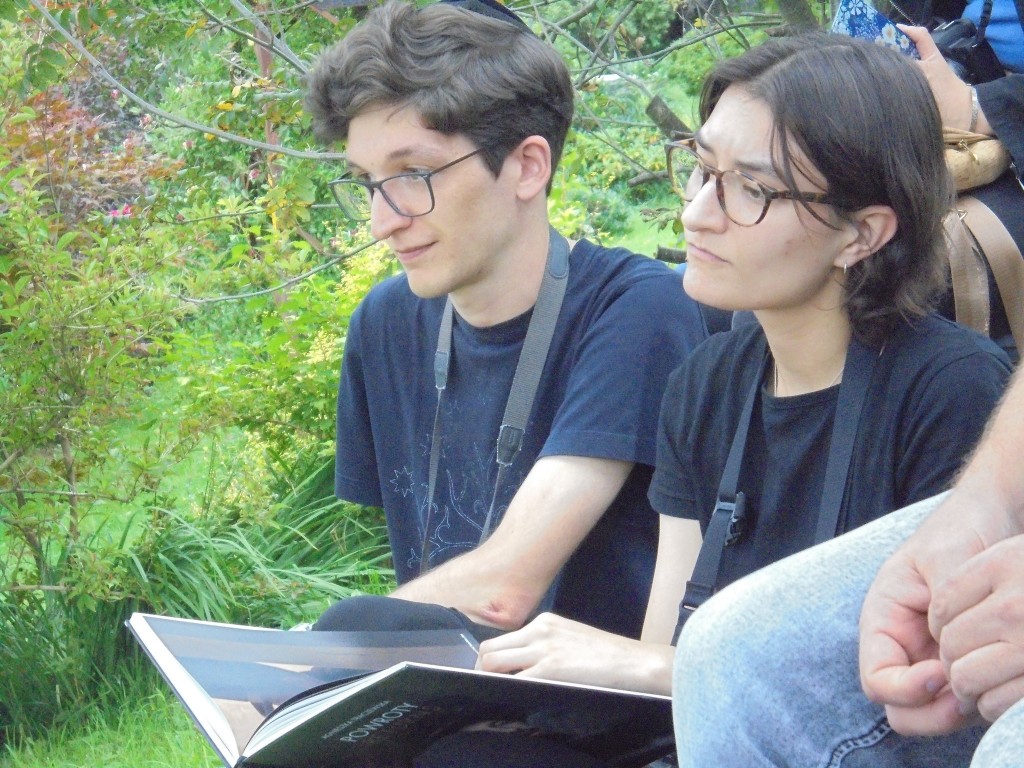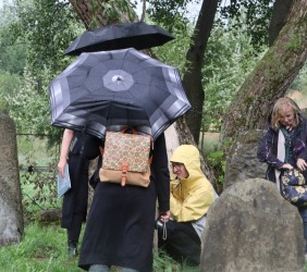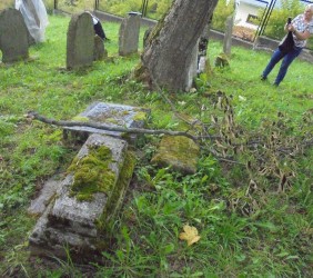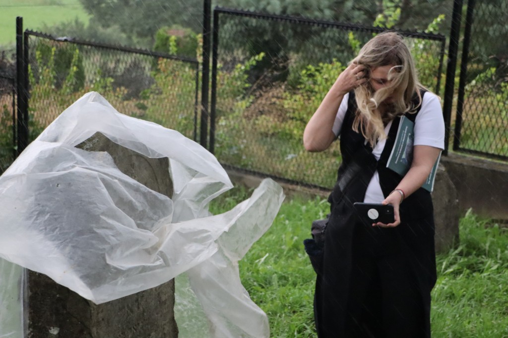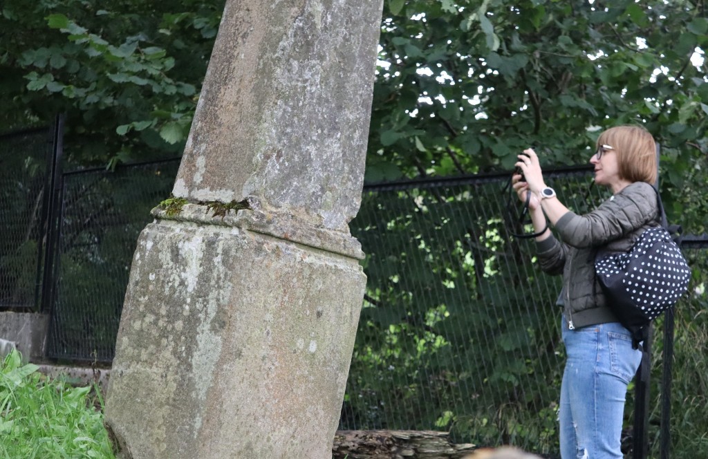 Pani Agnieszka rozpoczęłą warsztaty od opowieści o niedostępnym przeciętnemu człowiekowi świecie chasydów, swojej drodze do tego świata, początkach zainteresowania tematyką żydowską, która doprowadziła ją do bliskich relacji z ludźmi żyjącymi w dość hermetycznym świecie, do którego zwłaszcza kobiecie zajrzeć trudno. Poznawaliśmy twórczość tej niezwykłej fotografki oglądając wspomniane albumy, w zasadzie już niedostępne. Słuchaliśmy o jorcajtach - rocznicach śmierci sławnych cadyków, na które wciąż do Polski przybywają tłumy tajemniczych, czarnych postaci w kapeluszach i pejsach. I słuchalibyśmy jeszcze długo, gdyby nie nadciągająca ulewa! W pierwszych kroplach deszczu próbowaliśmy swoich sił w fotografii, zainspirowani ważnymi myślami prowadzącej. Niestety, same warsztaty trwały za krótko, ale - zainspirowani, wyszkoleni, żądni pracy, wrócimy jeszcze na cmentarz, by kontynuować pracę. Z wykonanych podczas warsztatów i w najbliższych dniach zdjęć, powstanie wystawa w Miejskiej Bibliotece, a Agnieszka Traczewska obiecała przyjechać na wernisaż, zatem będziemy mogli jeszcze posłuchać niedokończonych wątków, porozmawiać, zapytać o to, czego nie zdążyliśmy się dowiedzieć. Ulewa stworzyła zresztą niesamowitą scenerię i atmosferę, która - jak mamy nadzieję - zostanie utrwalona w pracach uczestników.