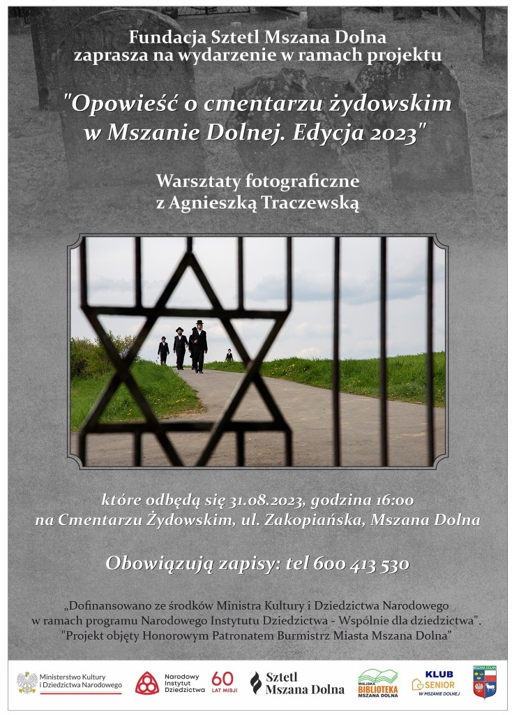 31.08.2023 r. na cmentarzu żydowskim w Mszanie Dolnej odbyły się warsztaty fotograficzne prowadzone przez znaną fotografkę, artystkę, producentkę filmową, Agnieszkę Traczewską. Chociaż fotografia nie jest pierwszym wyborem/zawodem Pani Agnieszki, która z wykształcenia jest teatrolożką, jednak - jak informuje Wikipedia - od 2006 roku tworzy serie zdjęć poświęconych chasydom przybywającym do Polski na groby cadyków oraz portretuje świat ortodoksyjnych społeczności żydowskich w Izraelu oraz USA. Wydała ona m.in. trzy niezwykłe albumy dokumentujące życie ortodoksyjnych Żydów: "Powroty. Returns", "A rekindled word" i "Kroke".