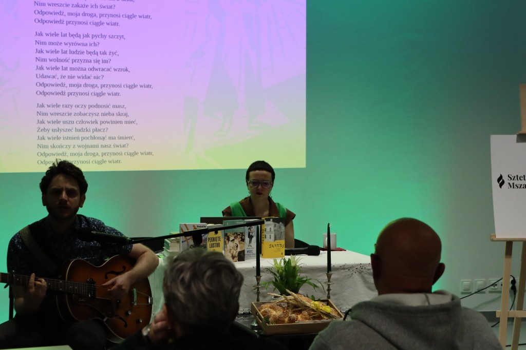 Zaprezentował je: śpiewająco, a potem także komentując i wyjaśniając własne tłumaczenia, zestawione z klasykami: Macieja Zembatego i Andrzeja Bianusza, badacz twórczości Cohena i Dylana, Jakub Antosz-Rekucki. Zgromadzeni odczytali także głośno analizowane teksty. Przejmująco zabrzmiał werset prezentowany przez panią z Ukrainy, będący pytaniem-wołaniem o koniec wojny, przemocy, nienawiści. Następnie, pracując w parach, uczestnicy wypracowywali własne interpretacje wybranych tekstów, dzieląc się w podsumowaniu swoimi wnioskami. Możliwość dodania swoich przemyśleń mieli także uczestniczący w warsztatach online. Całość domknął wspólny śpiew "Hallelujah" Leonarda Cohena, w tłumaczeniu Jakuba.