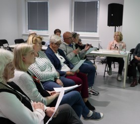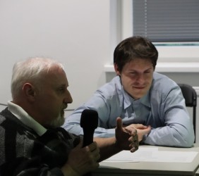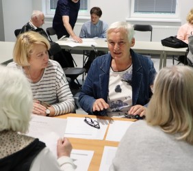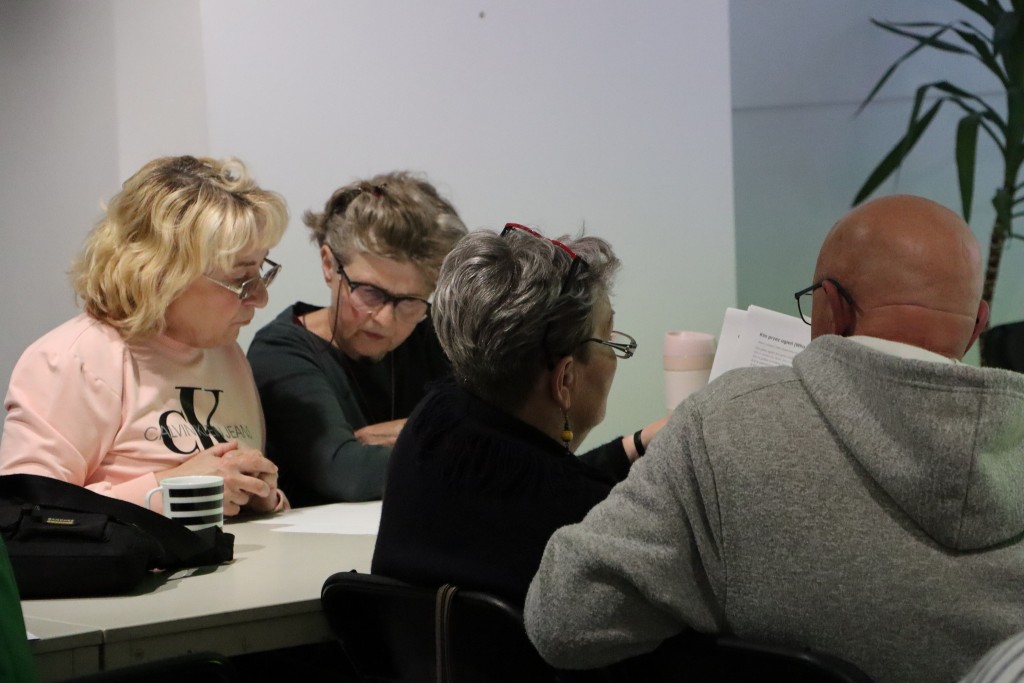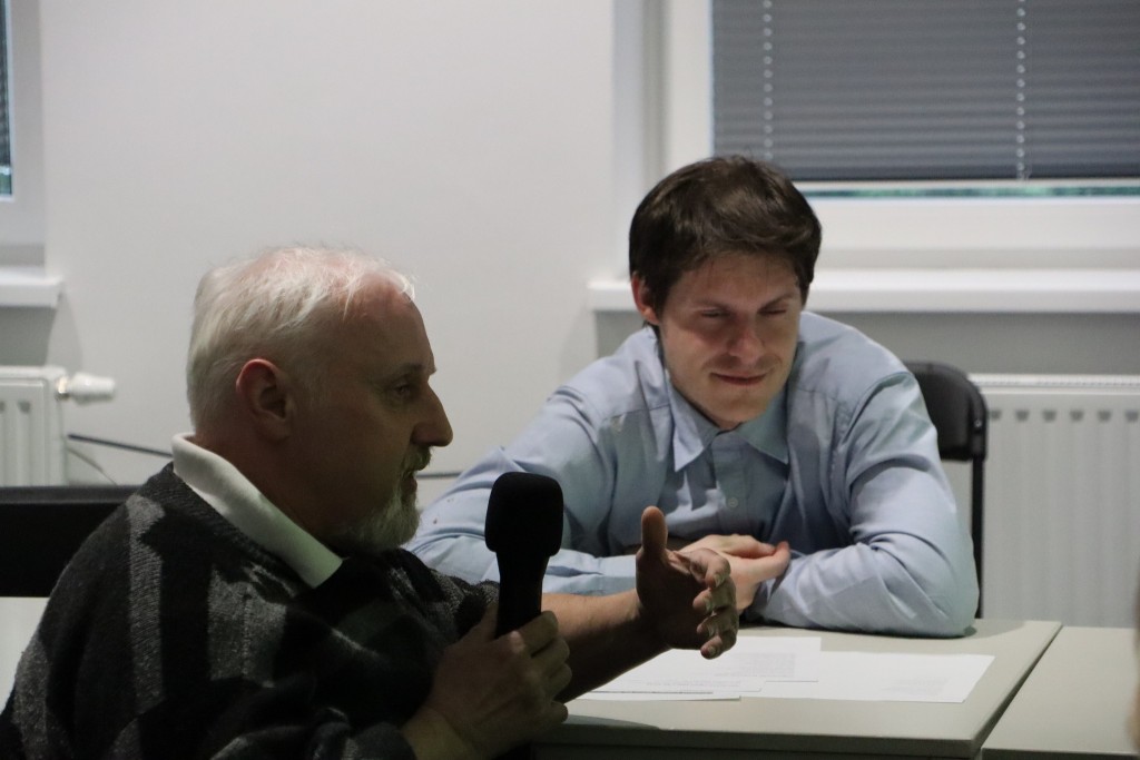 Po wstępnym, bardzo ciekawym wykładzie, uczestnicy przystąpili do analizowania wierszy/pieśni dwóch żydowskich bardów: Leonarda Cohena i Boba Dylana, laureata literackiej nagrody Nobla. Były to w zasadzie wielkie pytania tych wybitnych twórców, dotyczące najważniejszych kwestii egzystencjalnych: "Kto przez ogień/Who by fire" Cohena i "Odpowiedź przynosi wiatr/Blowin in the Wind" Dylana.