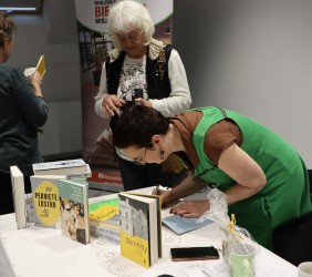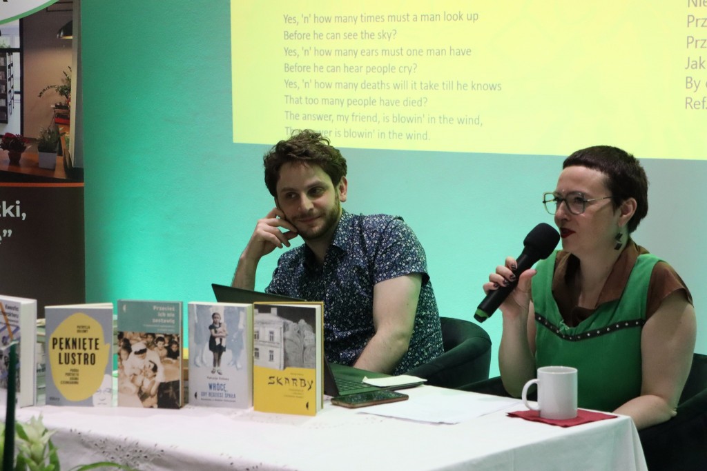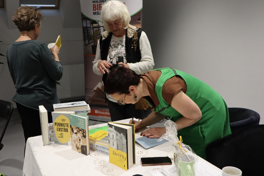 Na koniec uczestnicy dzielili się tradycyjnią piątkową chałką, a przy poczęstunku przygotowanym pod kątem zbliżającego się święta Szawuot, zatem serowo-mlecznym, trwały jeszcze rozmowy w kuluarach. Zgromadzona publiczność miała także okazję osobistej rozmowy z naszą gościnią oraz uzyskania dedykacji w zakupionych książkach autorstwa Patrycji.