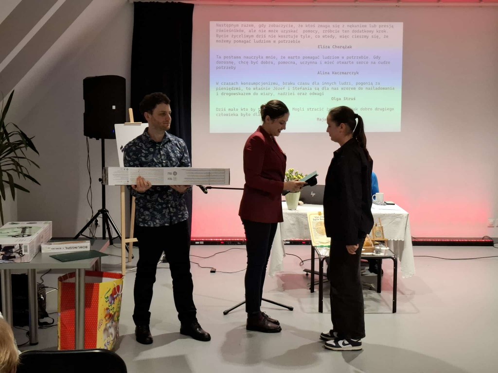 Uroczysta gala podsumowująca konkurs, odbyła sie 21.11.2025 r. w Miejskiej Bibliotece w Mszanie Dolnej. Uczestnicy otrzymali pamiątkowe dyplomy oraz nagrody rzeczowe, wśród których znalazły się hulajnogi, plecaki, sprzęt sportowy, gry oraz pamiątkowe pendrivy.