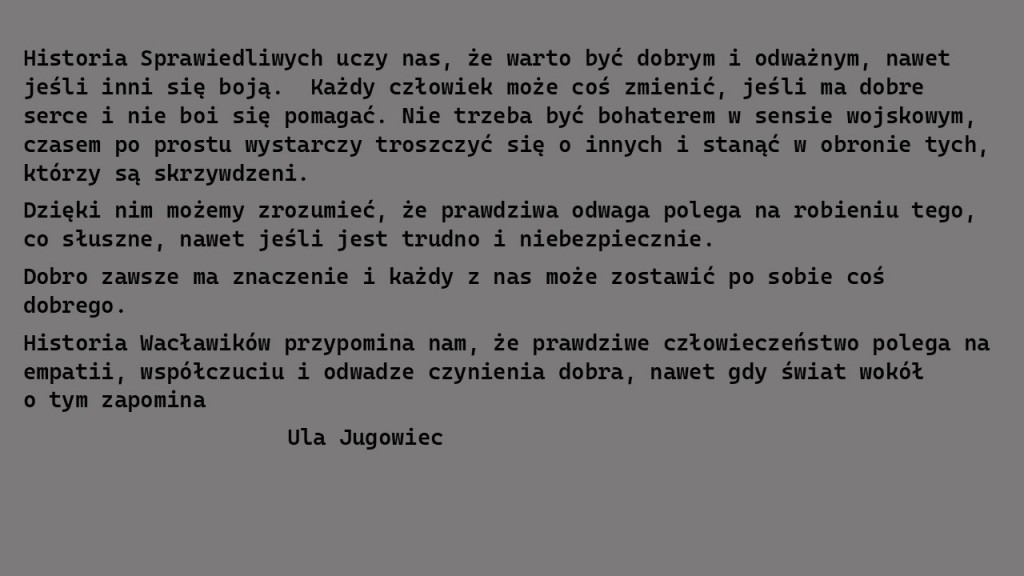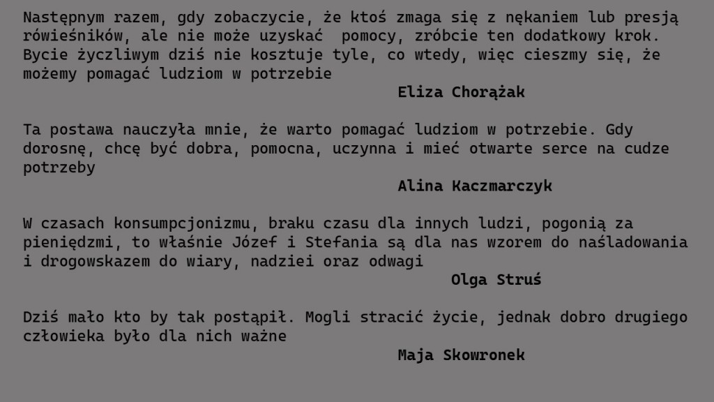 Temat prac pisemnych: „Czego mogą nas dziś uczyć mszańscy Sprawiedliwi, Stefania i Józef Wacławikowie?”