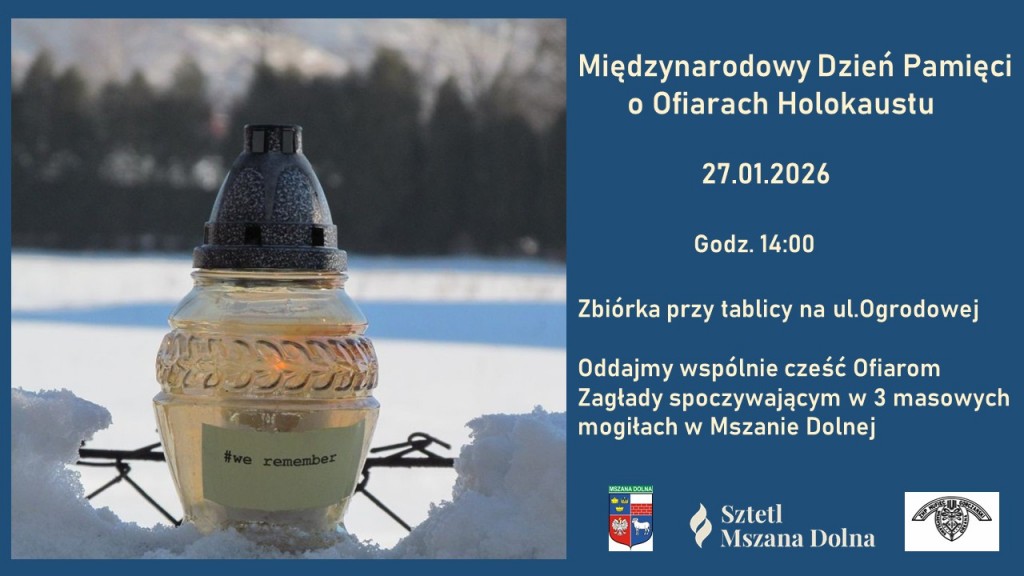 Zapraszamy serdecznie na obchody Międzynarodowego Dnia Pamięci o Ofiarach Holokaustu w Mszanie Dolnej.