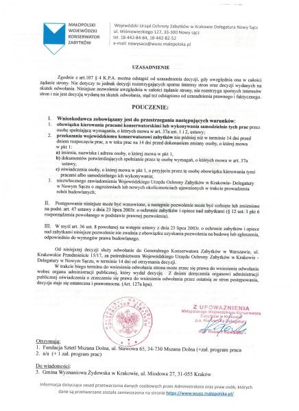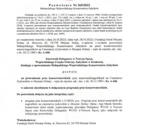 na realizację zadania pn. „Renowacja cmentarza żydowskiego w Mszanie Dolnej”