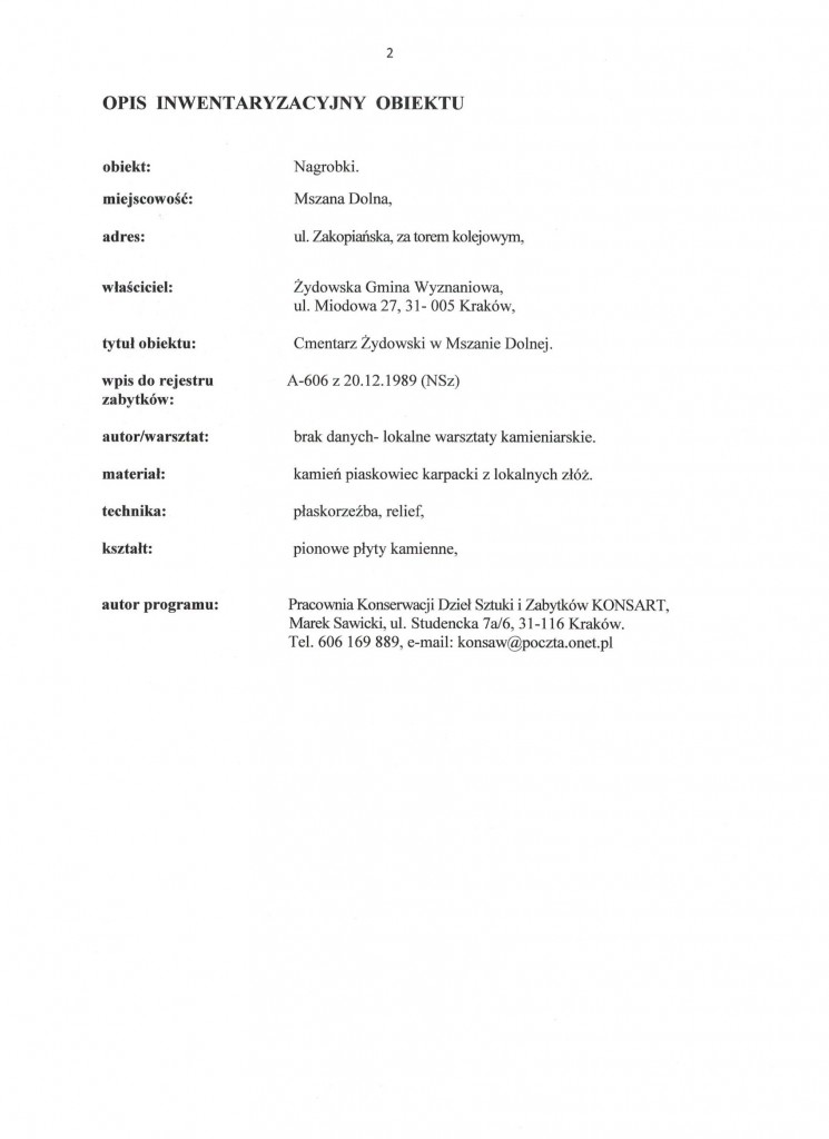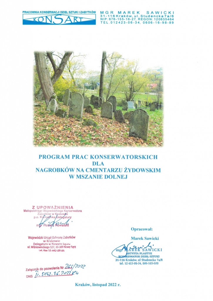 1. Nazwa przedmiotu zamówienia: Renowacja cmentarza żydowskiego w Mszanie Dolnej.