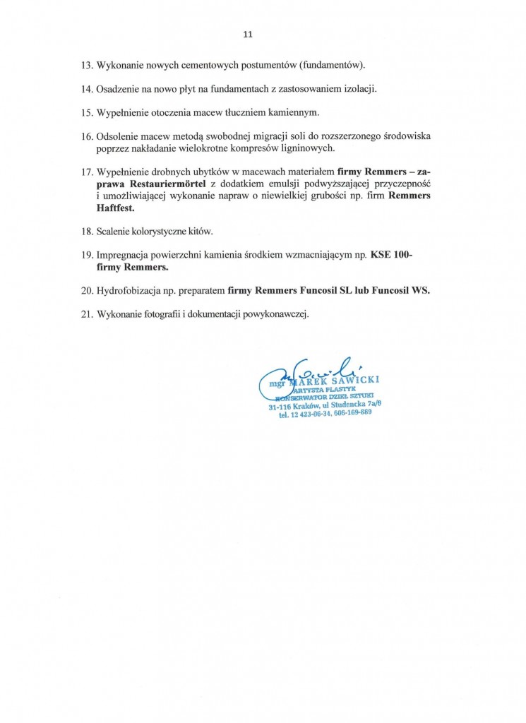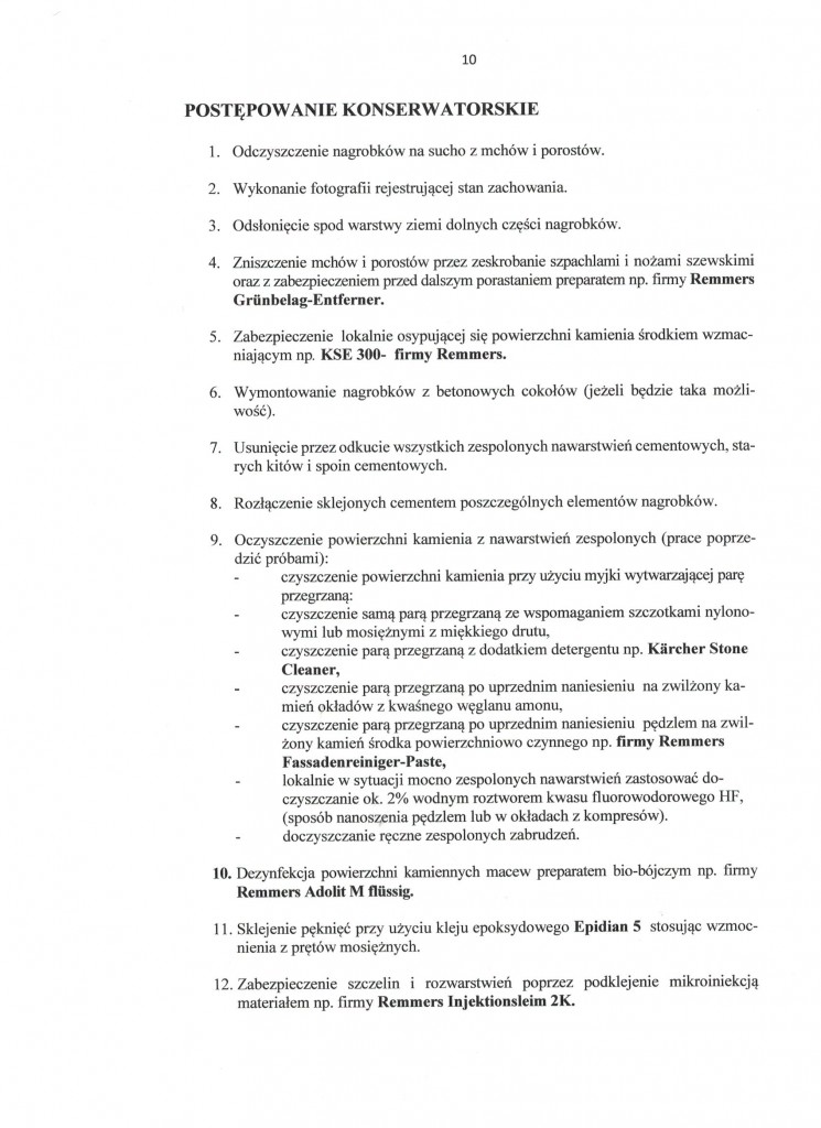 Program prac konserwatorskich (dotyczy macew) – stanowiący załącznik nr 3 do ogłoszenia