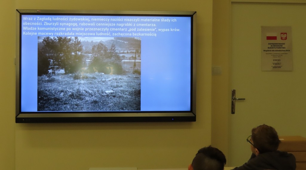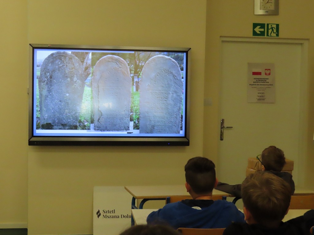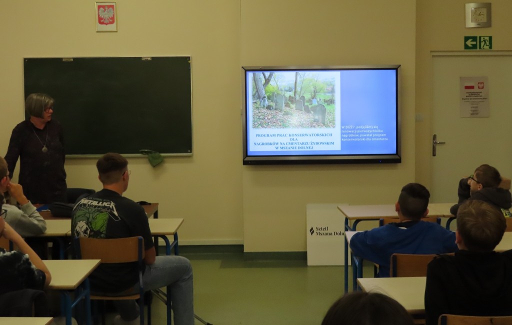 1.10.2024 r. przeprowadziliśmy kolejne spotkanie z młodzieżą szkolną, wokół tematyki pamięci o żydowskiej społeczności miasta i gminy Mszana Dolna. Tym razem zostaliśmy zaproszeni do Szkoły Podstawowej nr 1 w Mszanie Górnej, gdzie opowiedzieliśmy uczniom o życiu i śmierci mszańskich Żydów oraz jedynym materialnym śladzie po ich obecności, cmentarzu żydowskim w Mszanie Dolnej. Miał on podzielić los społeczności żydowskiej, zostać wraz z nią unicestwiony, jednak udało się go - przynajmniej częściowo - ocalić. Dewastowany podczas II wojny światowej oraz w latach powojennych, uratowany został przez wpisanie go do rejestru zabytków w 1989 r. oraz ogrodzeniu 2 lata później przez jednego z nielicznych ocalonych, Lejba Gatterera. Fundacja Sztetl Mszana Dolna kontynuuje te ważne działania, otaczając nekropolię opieką i kontynuując jego renowację.