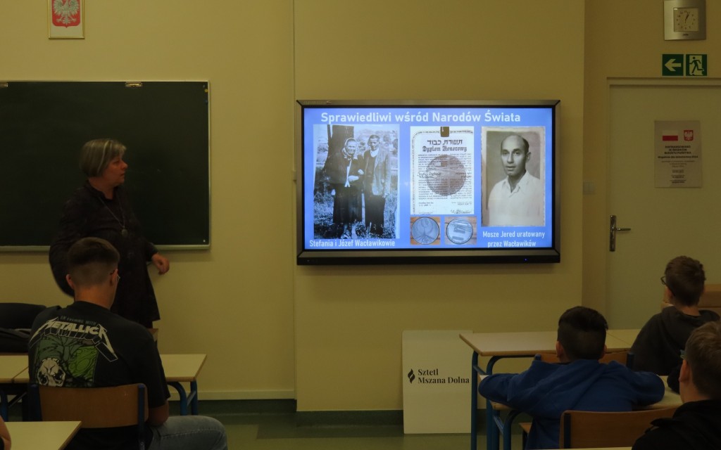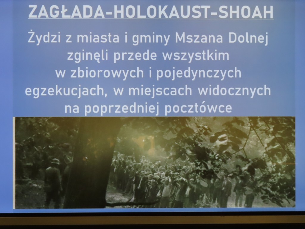 Młodzi ludzie z zainteresowaniem wysłuchali opowieści o dziejach tutejszych Żydów, wraz z ich tragicznym zwieńczeniem: Zagładą. Poznali wybrane rodziny, wkład żydowskich mieszkańców w rozwój Mszany Dolnej i regionu, ważne dla tej społeczności osoby i miejsca. Także postaci mszańskich Sprawiedliwych wśród Narodów Świata, Stefanii i Józefa Wacławików oraz miejsca pamięci.