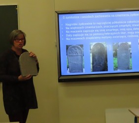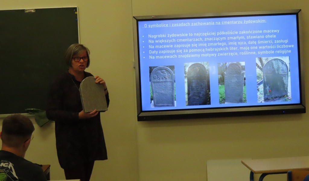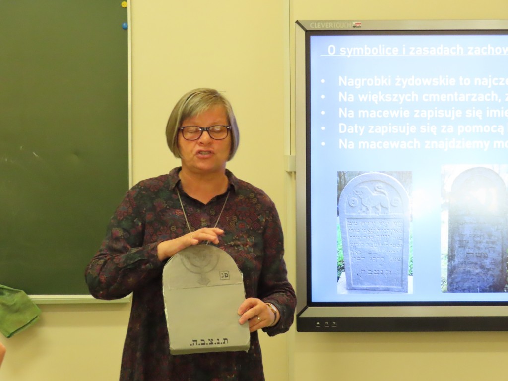 Szczególną częścią spotkania była opowieść o zabytkowej nekropolii, połączona z informacjami o zasadach zachowania w żydowskich miejscach kultu i pamięci, sposobami upamiętniania, symbolice nagrobków, odmienności inskrypcji, biblijnych kontekstach zdobień.
